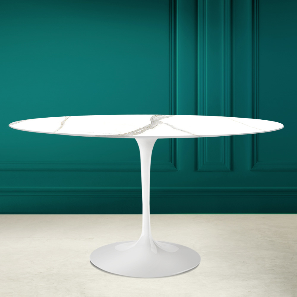 Stół jadalniany z owalnym blatem z ceramiki calacatta michelangelo Made in Italy