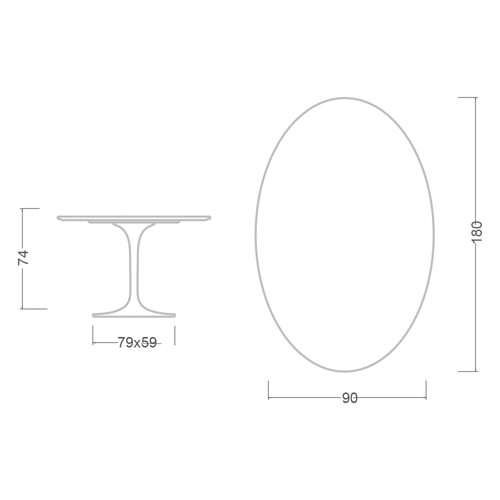 - Blat: 180 x 90 / Owalna podstawa: 79 x 59 cm x H 73 cm