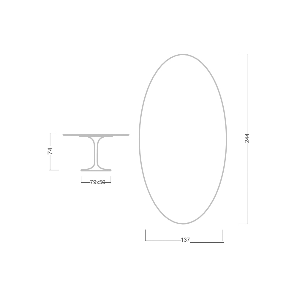 - Blat: 244 x 137 / Owalna podstawa: 79 x 59 cm x H 73 cm
