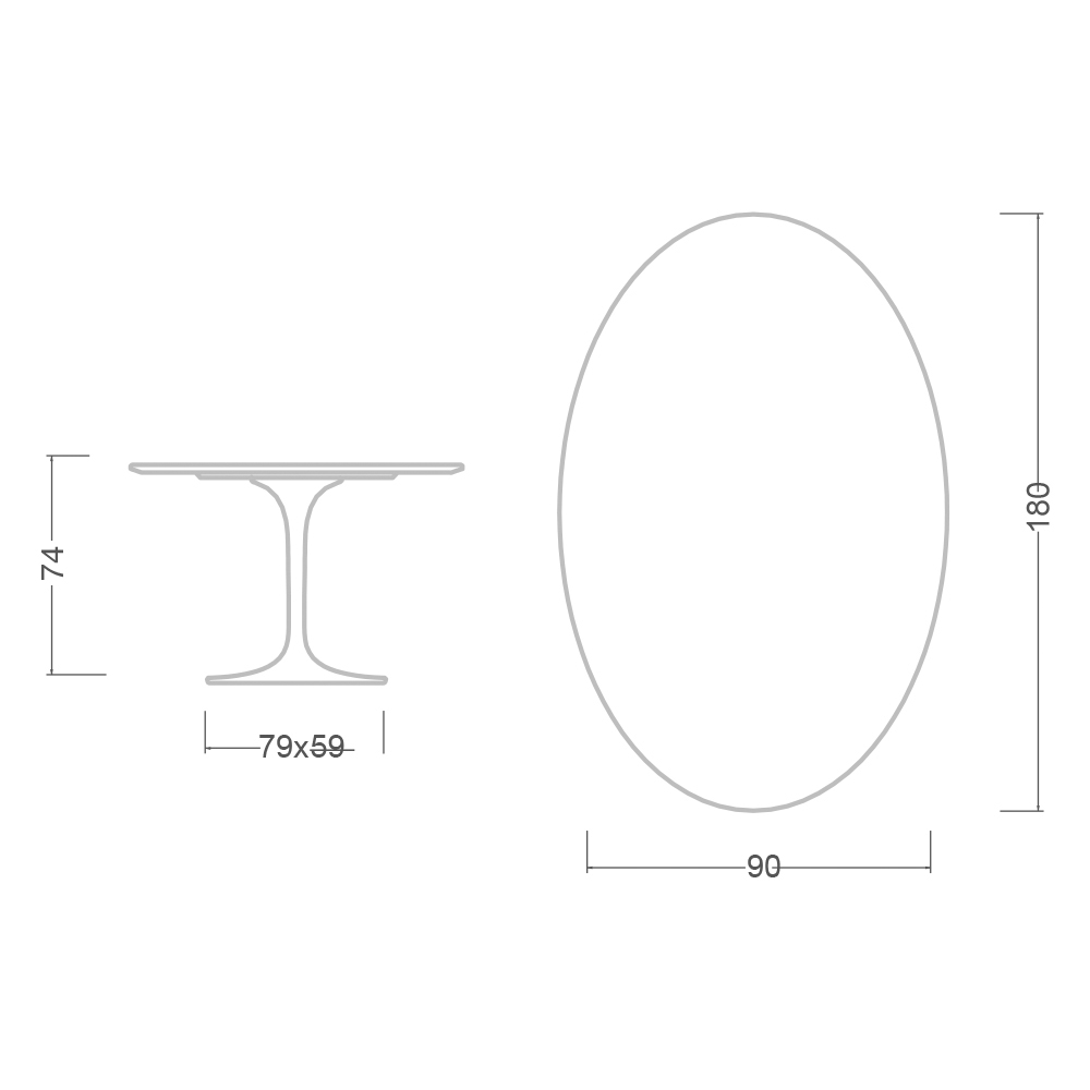 - Blat: 180 x 90 / Owalna podstawa: 79 x 59 cm x H 73 cm