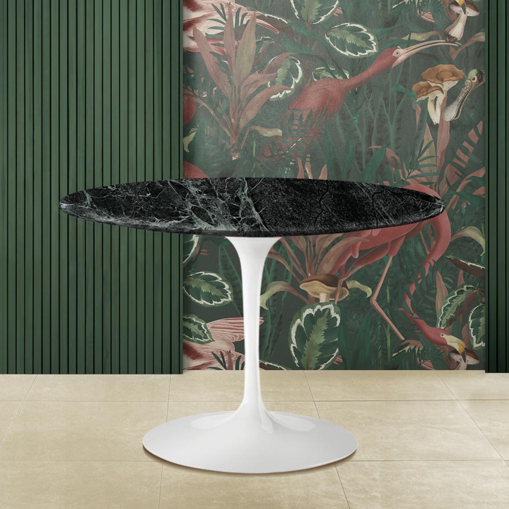 Okrągły stół do jadalni z blatem z zielonego marmuru alpejskiego i podstawą z polerowanego aluminium Made in Italy