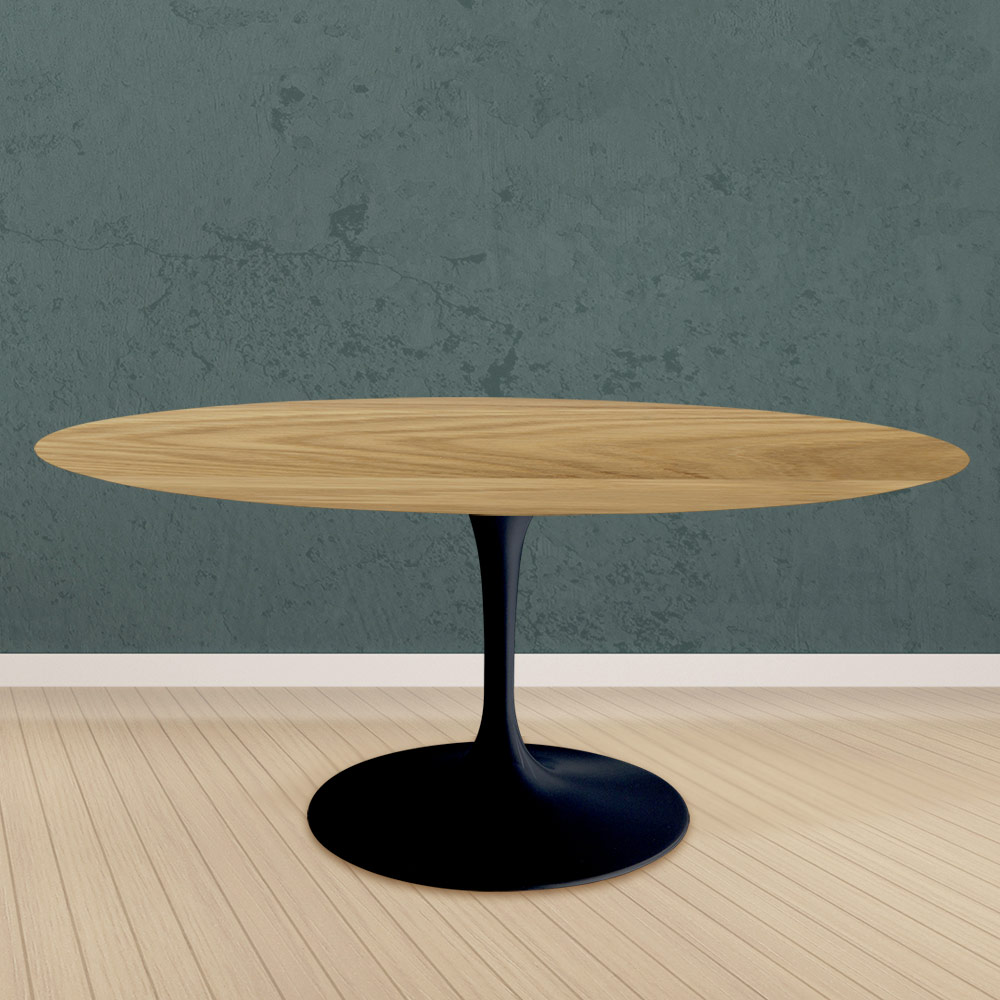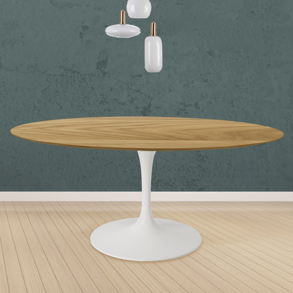 Okrągły stół do jadalni z naturalnego dębu i podstawą z polerowanego aluminium Made in Italy