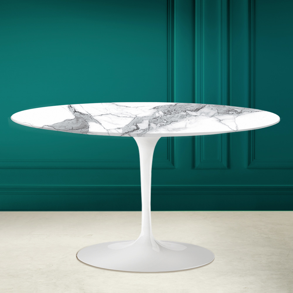 Bardzo wysoki ceramiczny owalny stolik kawowy Statuario Made in Italy