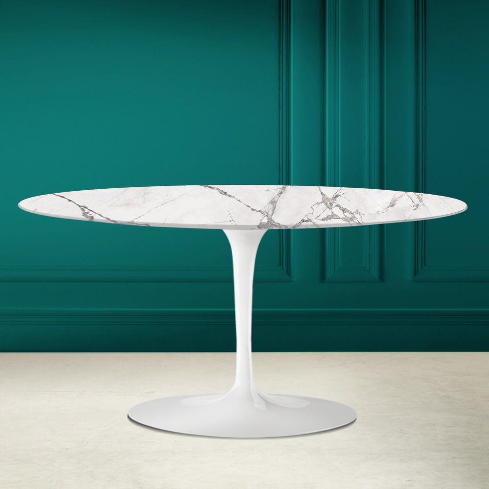 niewidocznym blatem ceramicznym Select, efektem matowego marmuru statuarietto i podstawą