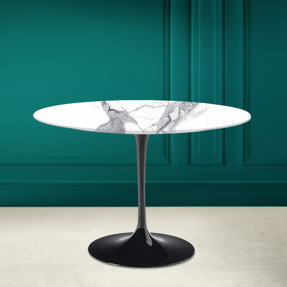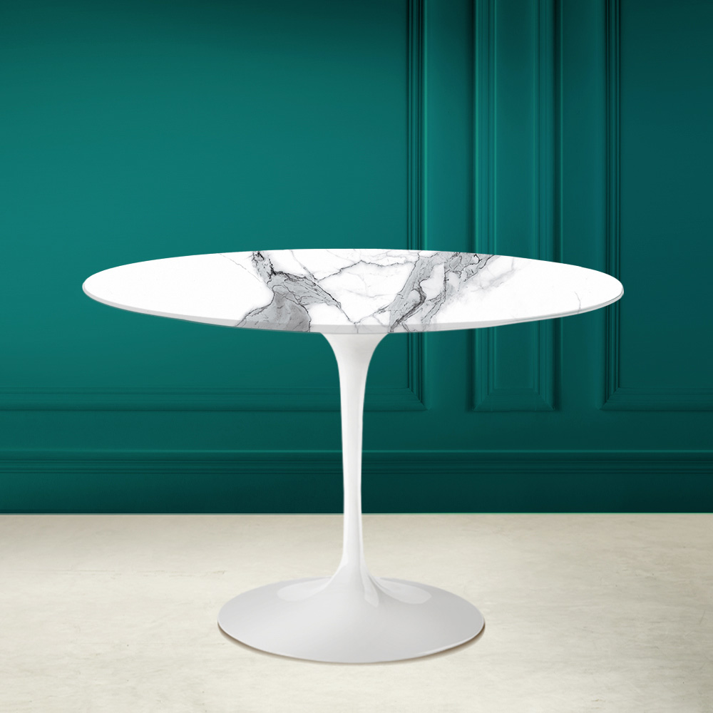 Stół jadalniany z okrągłym blatem z ceramiki statuario bardzo wysokiej jakości Made in Italy