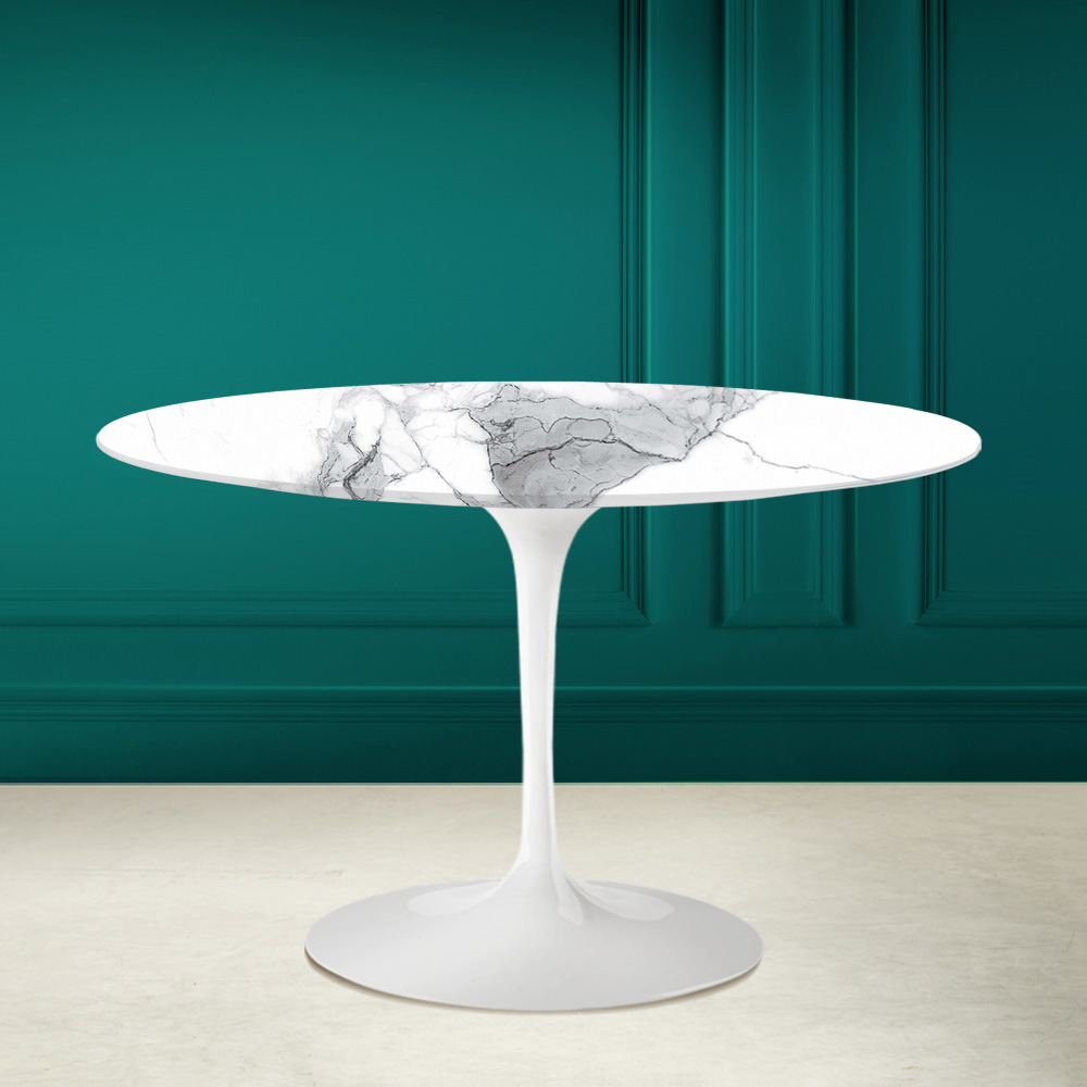 wyprodukowaną we Włoszech. Liniowe i wyrafinowane wykończenia tworzą element, który łatwo dopasować do każdego stylu mebli w każdym salonie i kuchni. Połączenie ceramiki statuario altissimo i polerowanego aluminium sprawia, że stół ten