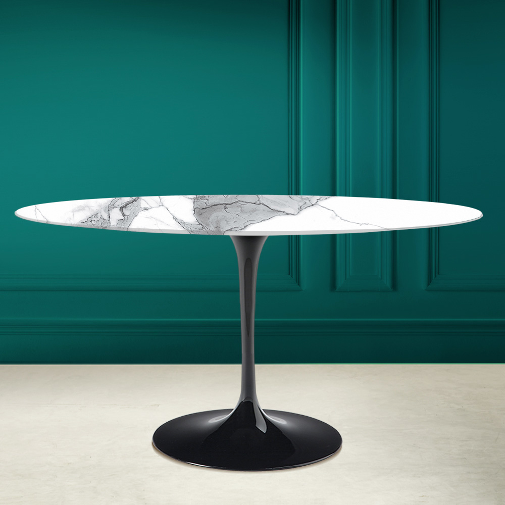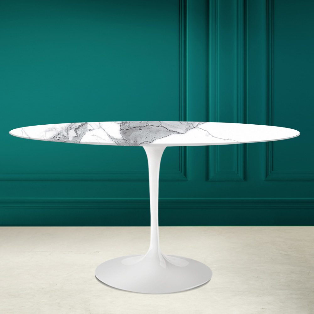 Stół do jadalni z owalnym blatem z ceramiki statuario altissimo, matowym efektem marmuru statuario i