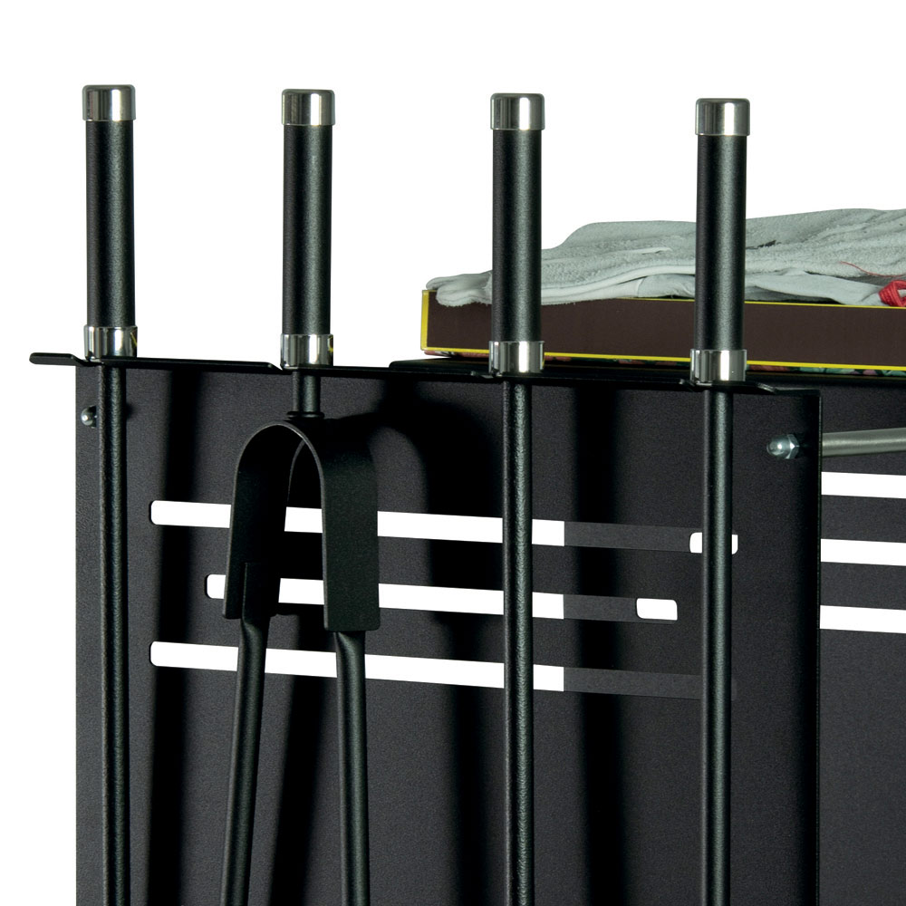 Ten wielofunkcyjny uchwyt na drewno jest niezbędnym dodatkiem dla miłośników kominków. Wykonany z solidnej metalowej konstrukcji, wyposażony w kółka ułatwiające przemieszczanie. Szafka służy nie tylko do przechowywania dużej ilości drewna opałowego, ale także oferuje wydzielone miejsce na narzędzia niezbędne do gaszenia pożaru: łopatę, szczotkę, zacisk i hak, utrzymując w ten sposób porządek i praktyczność.