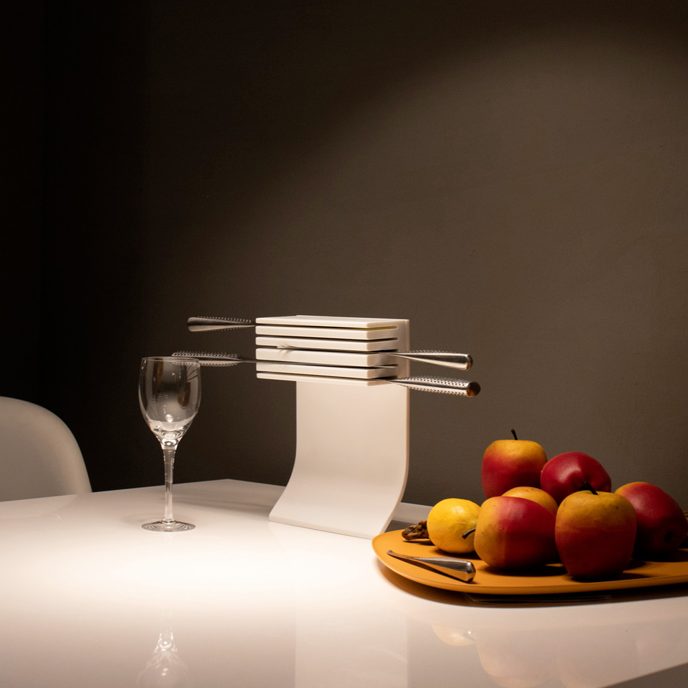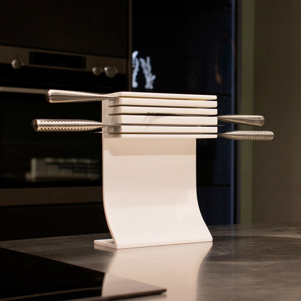 Uchwyt noża z białego corianu z 5 ostrzami, wysokiej jakości wyprodukowany we Włoszech.