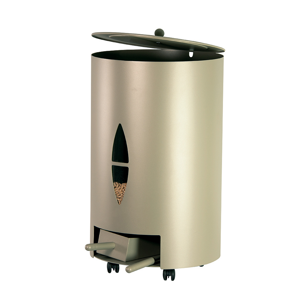 Ten uchwyt na pellet kominkowy wyróżnia się cylindrycznym i nowoczesnym designem , z łatwością dopasowuje się do każdego środowiska domowego. Solidna metalowa konstrukcja zapewnia wytrzymałość i długowieczność, a zintegrowane kółka zapewniają łatwe przemieszczanie. Pojemnik wyposażony jest w górną pokrywę , która chroni pellet przed wilgocią i kurzem, utrzymując go w stanie suchym i gotowym do użycia. Co więcej, przednie okienko nie tylko dodaje estetyki, ale pozwala na monitorowanie poziomu peletu bez konieczności otwierania pojemnika. Ten uchwyt na pellet jest idealnym rozwiązaniem dla osób poszukujących praktyczności, czystości i stylu w ogrzewaniu domu.