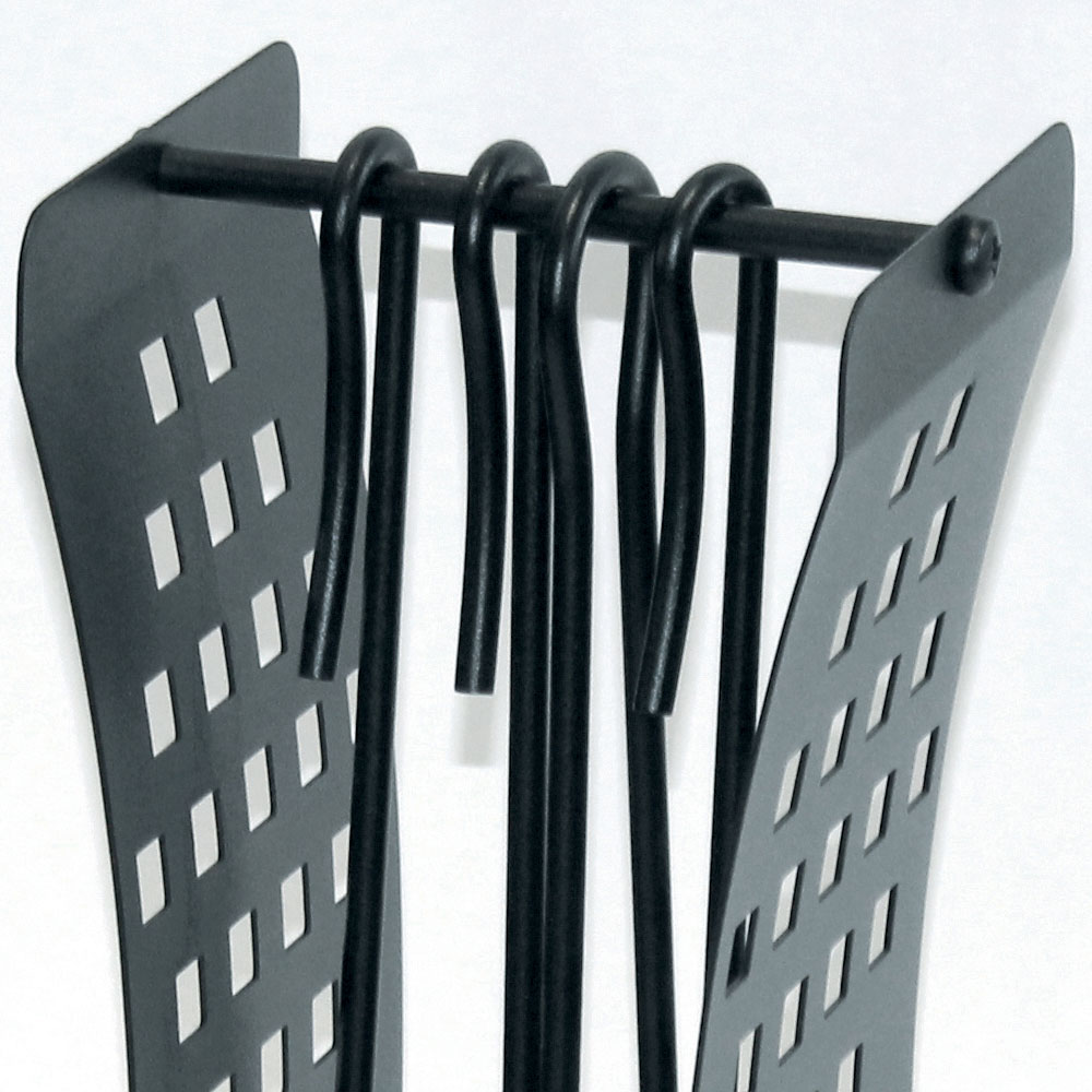 Dzięki solidnej konstrukcji i czarnemu wykończeniu zapewnia długą żywotność i łatwą konserwację . Solidne uchwyty zapewniają pewny chwyt, co pozwala skutecznie i bez wysiłku kierować ogniem. Podstawa została zaprojektowana tak, aby utrzymać narzędzia w pozycji pionowej, optymalizując przestrzeń i przyczyniając się do utrzymania porządku.
