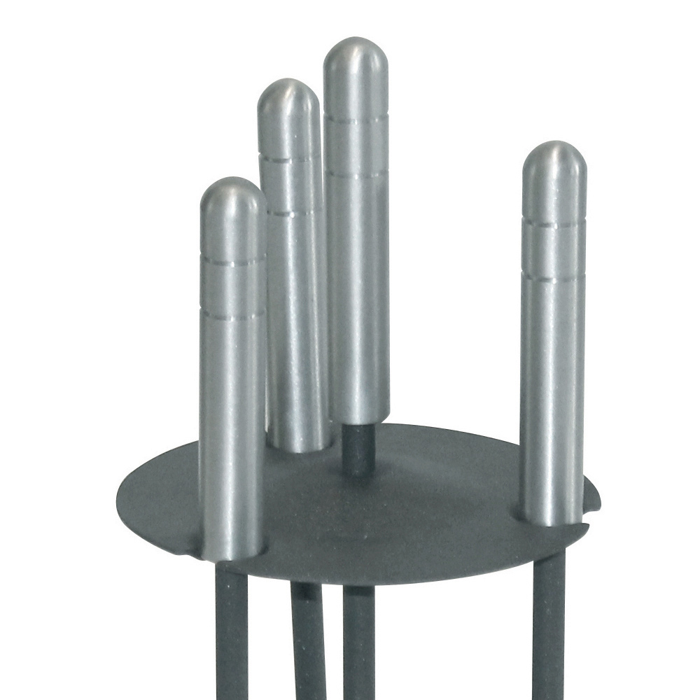 Wąska, ale trwała rama z wdziękiem pomieści 3 akcesoria, wszystkie z solidnymi uchwytami, które zapewniają łatwą obsługę i trwałość . Kompaktowa konstrukcja pozwala ustawić zestaw obok kominka, nie zajmując miejsca, a okrągła podstawa zapewnia stabilność i porządek.