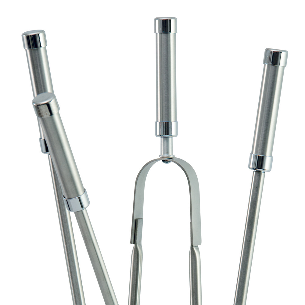 Satynowe wykończenie stali nie tylko świetnie wygląda, ale jest również praktyczne, skutecznie ukrywa odciski palców i smugi, zapewniając szybką i łatwą konserwację. Ergonomiczne rękojeści narzędzi zapewniają pewny i wygodny chwyt, umożliwiając pewne manipulowanie narzędziami.