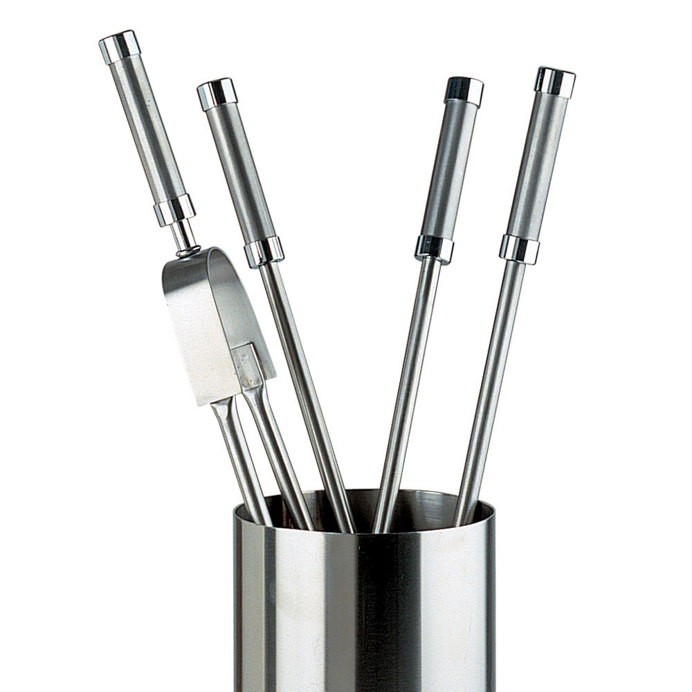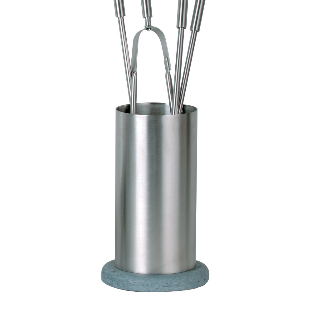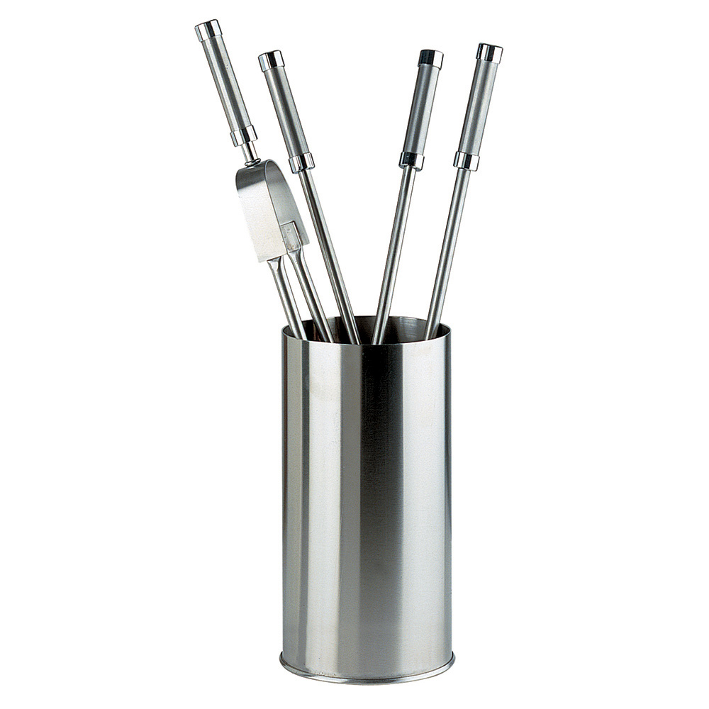 Wytrzymały i trwały , ten uchwyt narzędziowy został zaprojektowany tak, aby wytrzymać ciepło i częste użytkowanie. Każde naczynie wykończone jest uchwytem zapewniającym wygodny i pewny chwyt , pozwalającym na łatwe i stylowe posługiwanie się drewnem i popiołem. Cylindryczny wspornik sprawia, że każde narzędzie jest zawsze uporządkowane i pod ręką, nie rezygnując przy tym z elegancji.