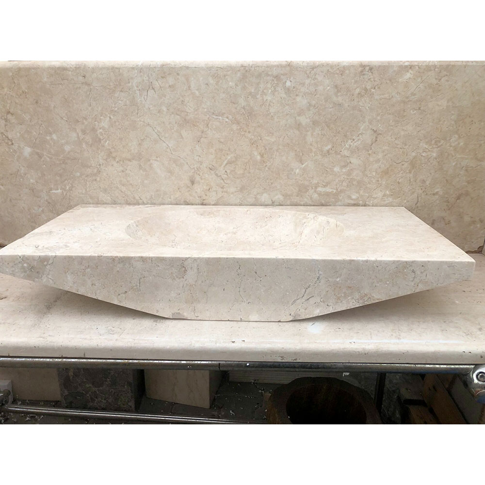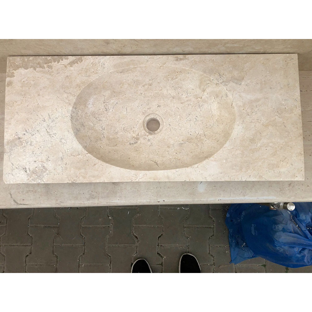 Umywalka nablatowa z kamienia naturalnego, wykonana ręcznie.