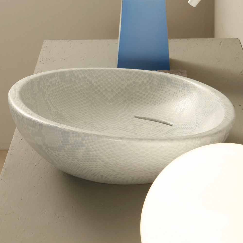 Designerska umywalka nablatowa z białej ceramiki pytona wyprodukowana we Włoszech Glossy
