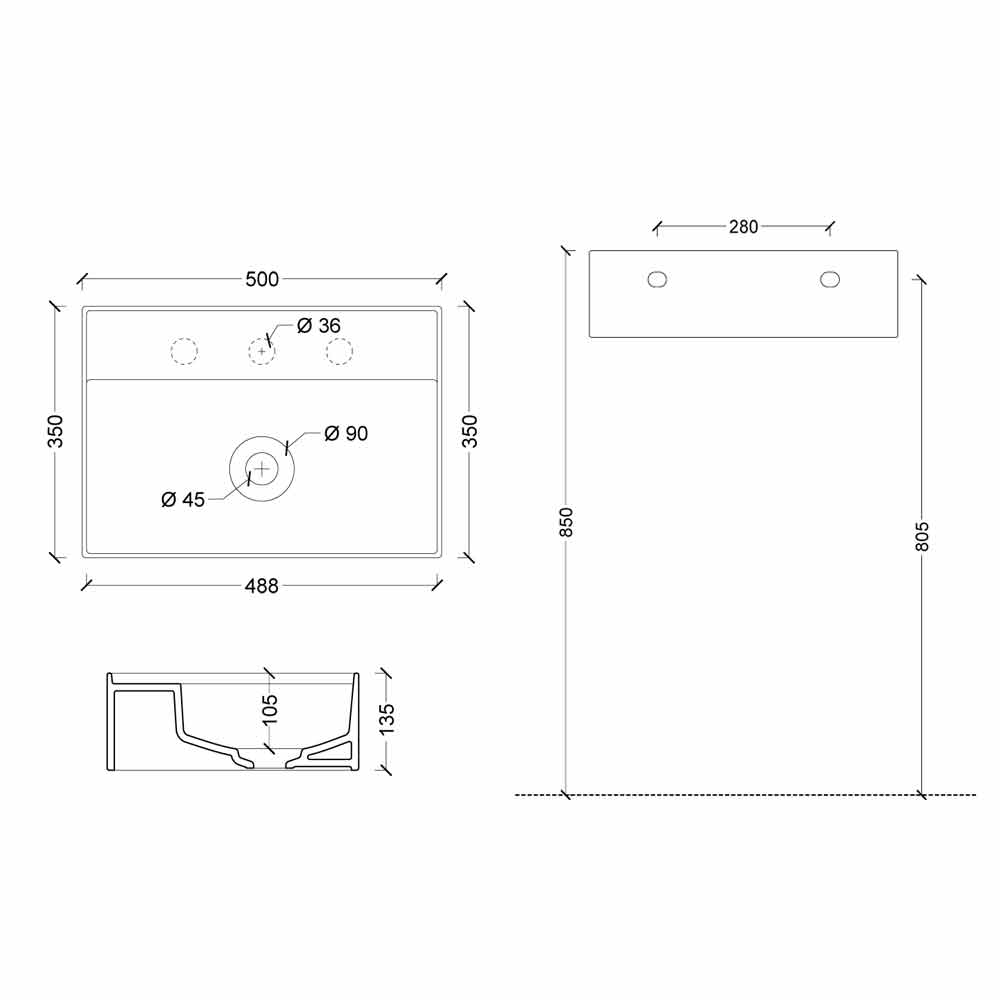 Uwaga: W zestawie odpływ ceramiczny o swobodnym odpływie, bez kranu.