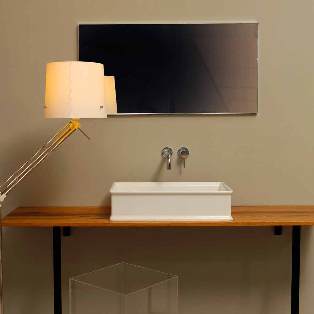 Umywalka o dyskretnym, neoklasycznym smaku, interpretacja oczyszczona ze wszystkich krętych i niespokojnych kształtów innych umywalek.