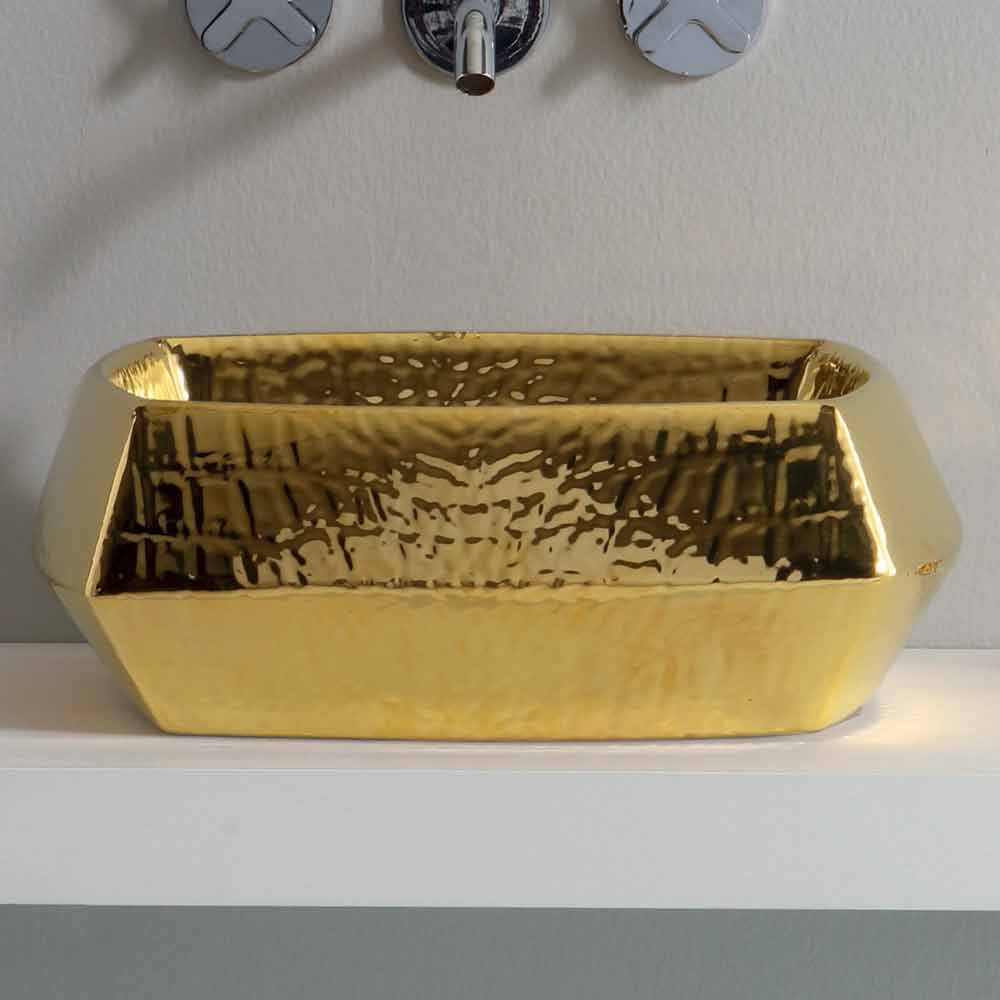 Designerska umywalka nablatowa ze złotej ceramiki wyprodukowana we Włoszech Simon