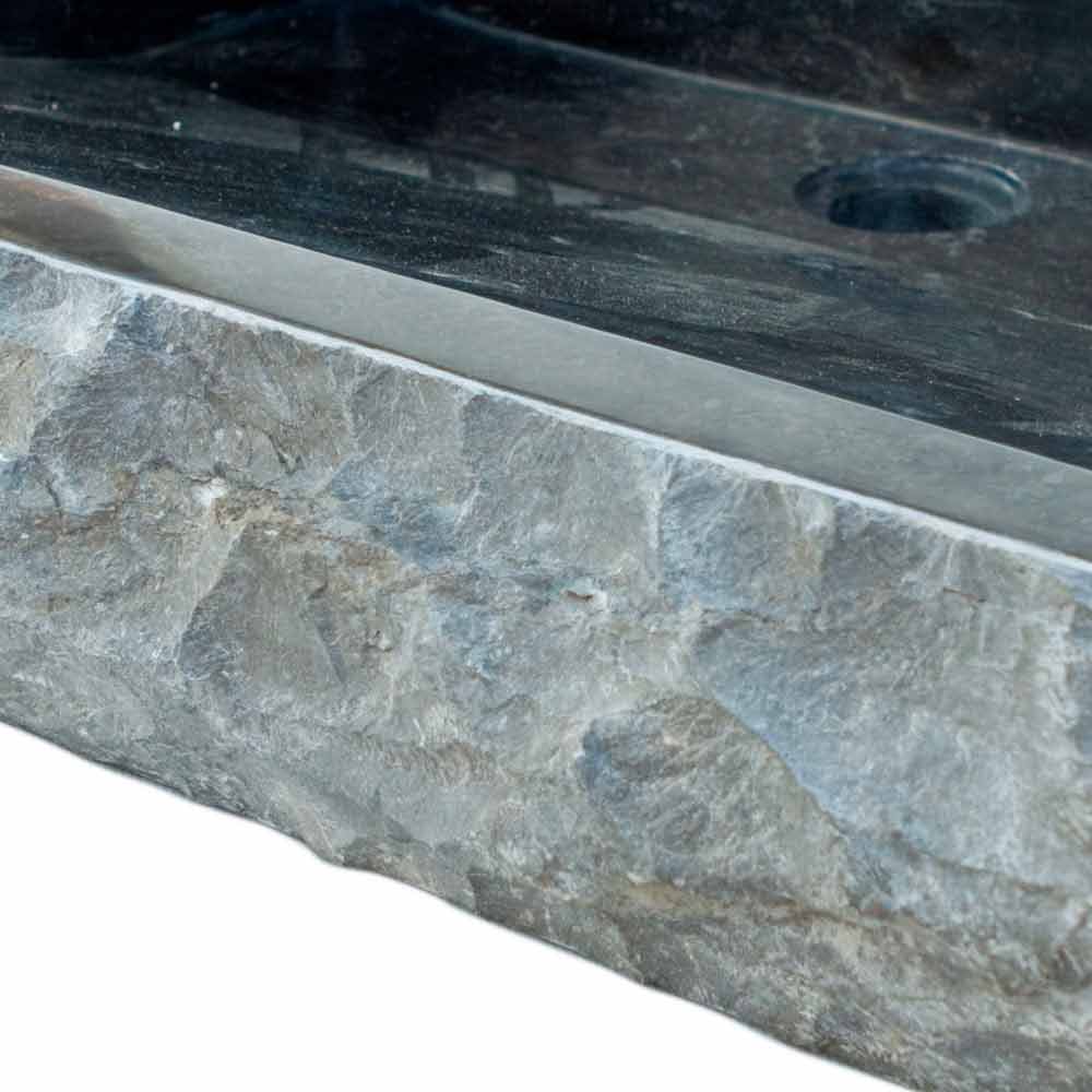 Ręcznie robiona umywalka nablatowa z kamienia naturalnego, nowoczesny design. Kolor: czarny
