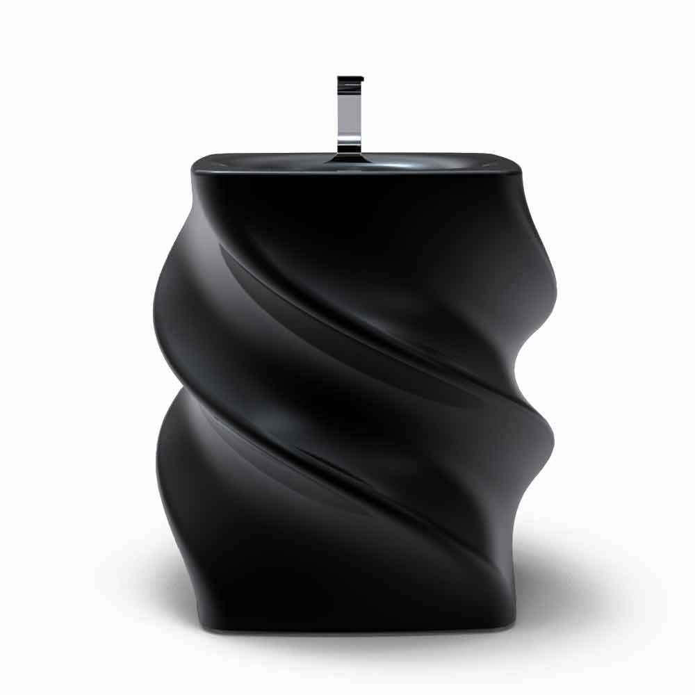 Umywalka wolnostojąca z „przykręcanymi” kształtami w Solid Surface; Jego linie obramowania pokazują profil, który przywodzi na myśl „skręcenie” gwintu śruby, od którego wzięła swoją nazwę w języku angielskim „Twist”. Jego cechą charakterystyczną jest "falisty" profil i lekko "skręcony" kształt sam w sobie, pochodzący z kilku zwojów lub obrotów wykonanych w skręcaniu bryły o podstawie czworokątnej, niwelującej jednak tę cechę, w części początkowej i końcowej. Armatura sanitarna posiada umywalkę w kształcie półkuli z przylegającymi do niej płaskimi częściami, nadającą się do umieszczenia wszystkiego, co można wykorzystać do toalety. Jest również ergonomiczny, ponieważ w każdym przypadku jest zaokrąglony w częściach z widocznym gwintem. Charakteryzuje się błyszczącym / matowym czarnym wykończeniem (RAL9005), które nadaje mu pewnej elegancji.