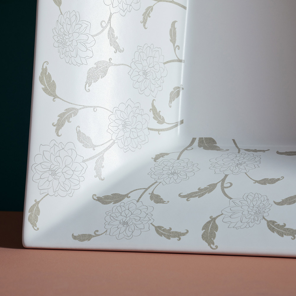 - dekoracja wewnętrzna z reliefem kwiatów na białej matowej emalii, zewnętrzna biała matowa emalia
