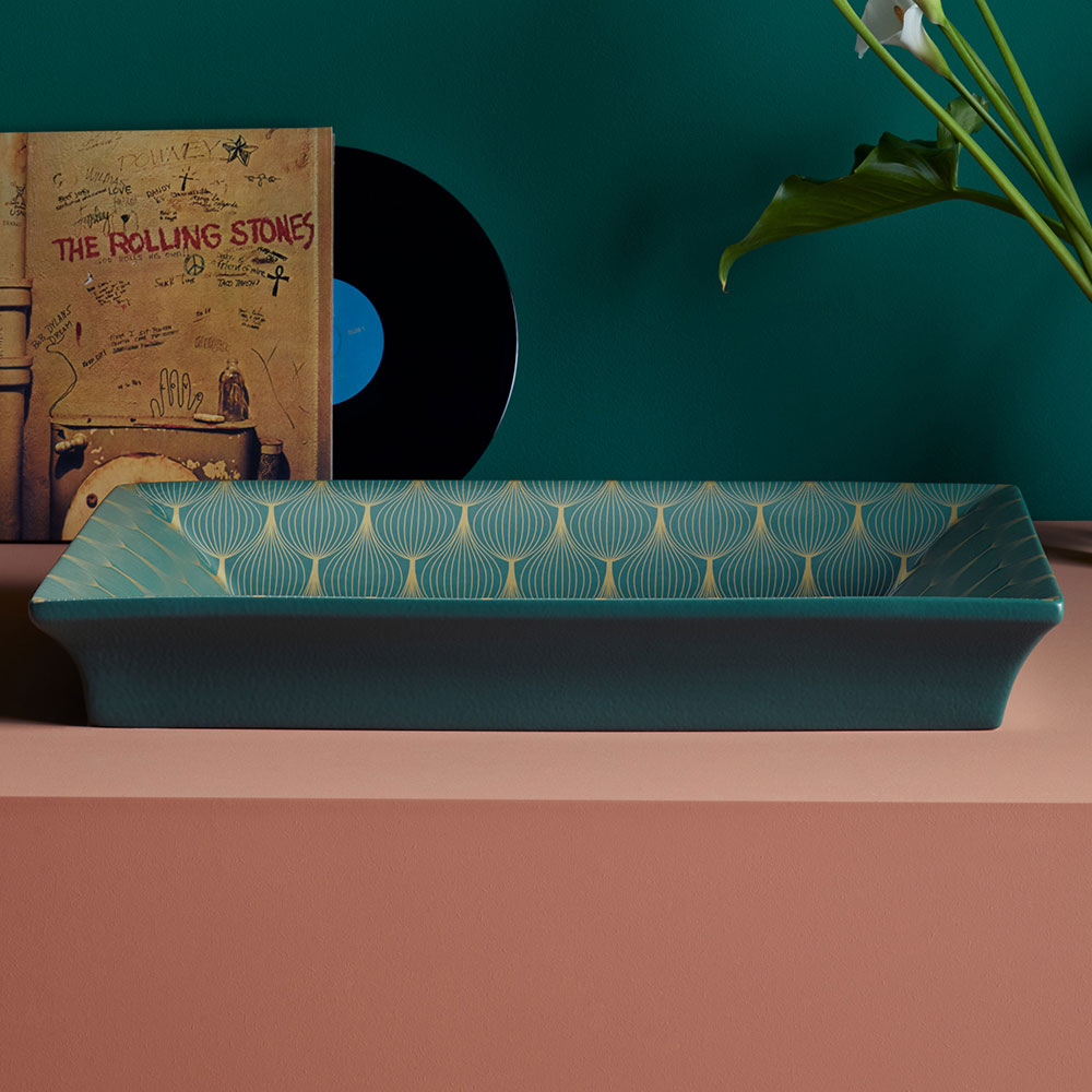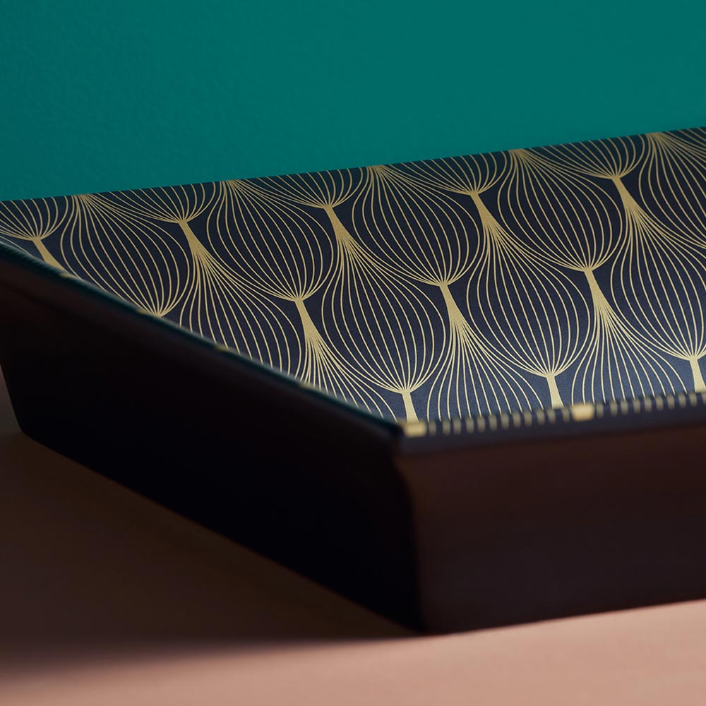 - tekstura wnętrza w matowym szmaragdzie i złocie, strona zewnętrzna w matowej szmaragdowej emalii