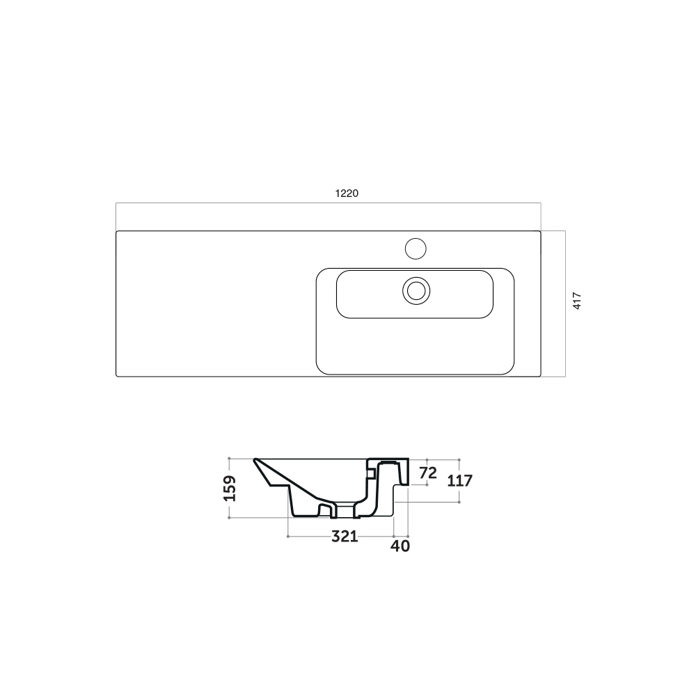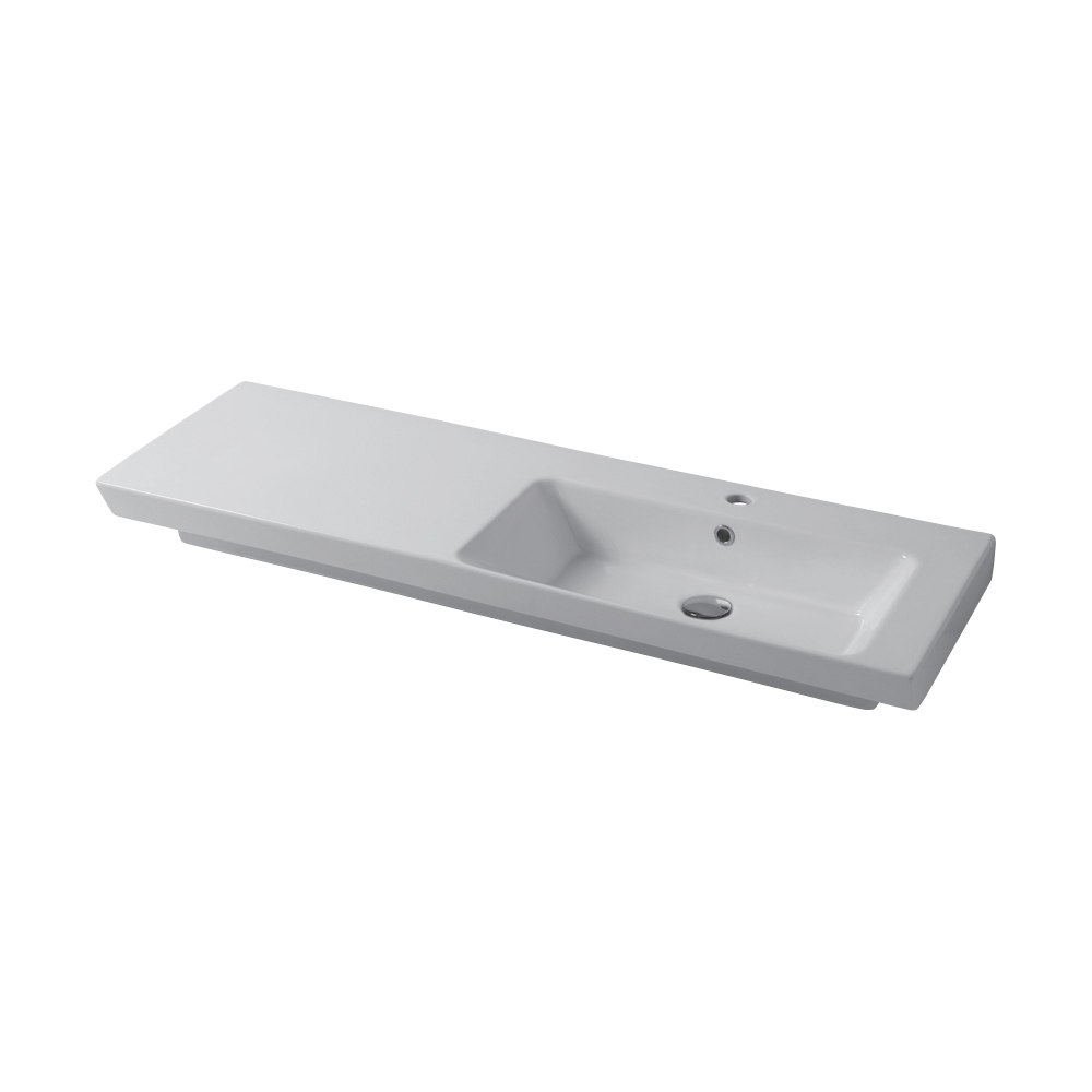 skośnego kroju przodu , który nadaje elegancji i rozmachu. Seria ważnych umywalek, również dzięki bocznym powierzchniom podparcia i różnorodności wymiarów, stanowi idealną odpowiedź na różne potrzeby przestrzenne i funkcjonalne.