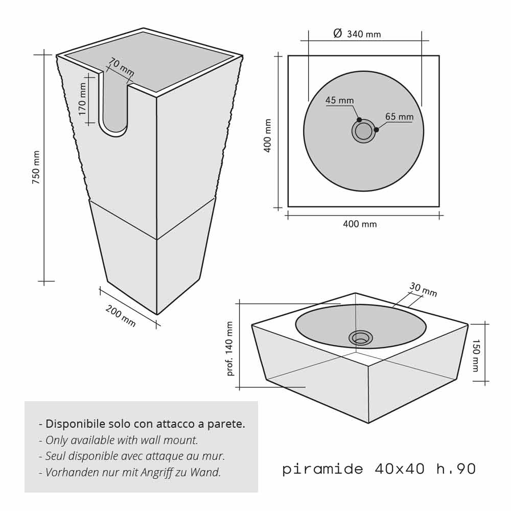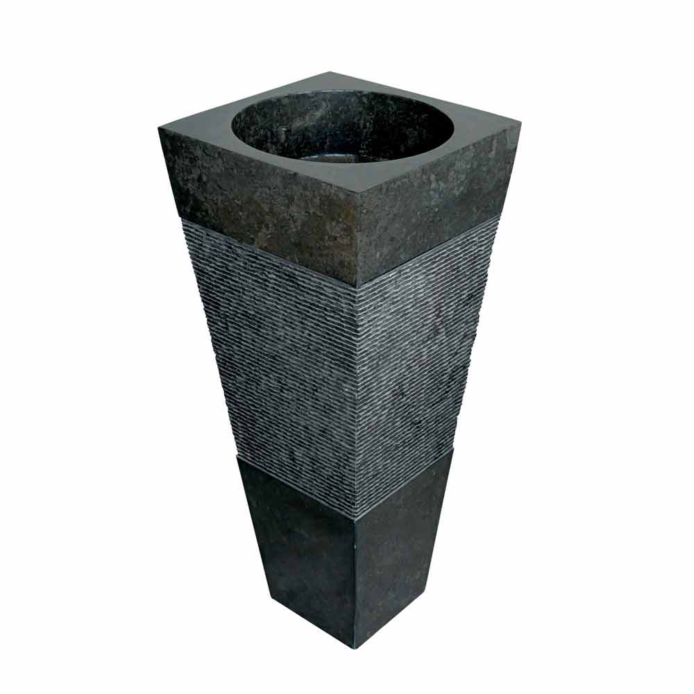 Umywalka na postumencie w kształcie odwróconej piramidy z czarnego kamienia naturalnego model Nias.