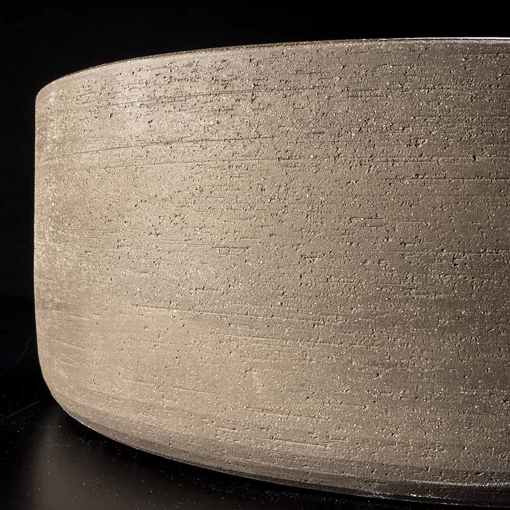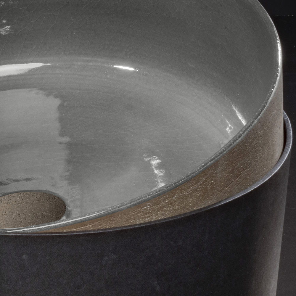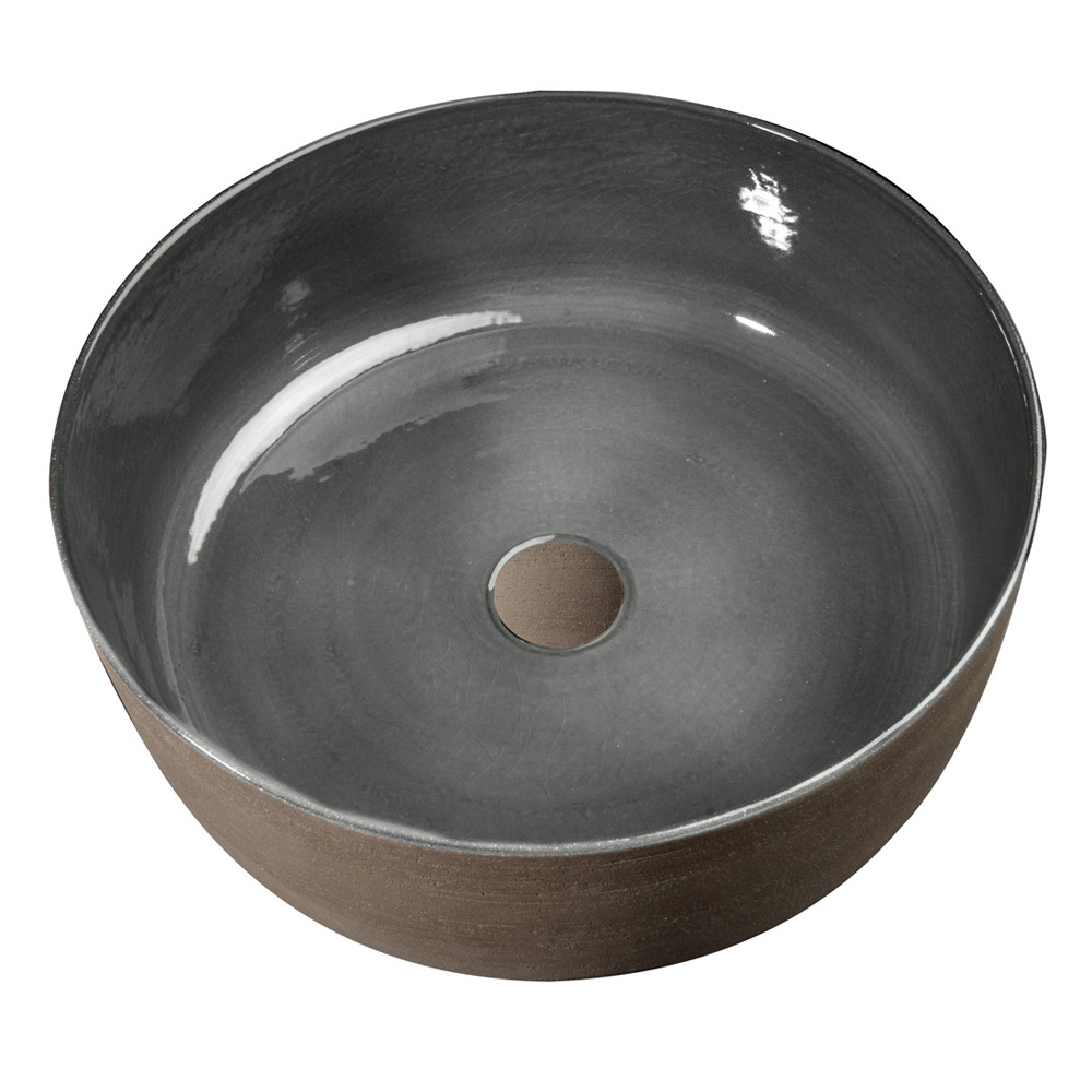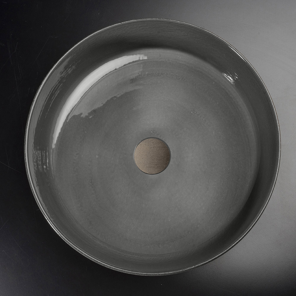 Umywalka nablatowa o okrągłym kształcie wykonana we Włoszech z gliny ogniotrwałej , obracana ręcznie przy trzecim ogniu. Jego estetyka charakteryzuje się doskonałym połączeniem naturalnej woskowanej i wodoodpornej powierzchni zewnętrznej z bardziej rustykalnym stylem oraz lśniącym i szkliwionym szarym wykończeniem wnętrza, kolorem, który wyraża elegancję w dyskretny i powściągliwy sposób. Każdy element umywalki jest wykonywany ręcznie , aby ożywić ekskluzywne rozwiązanie wyposażenia, o wysokiej wartości i niezrównanej jakości.