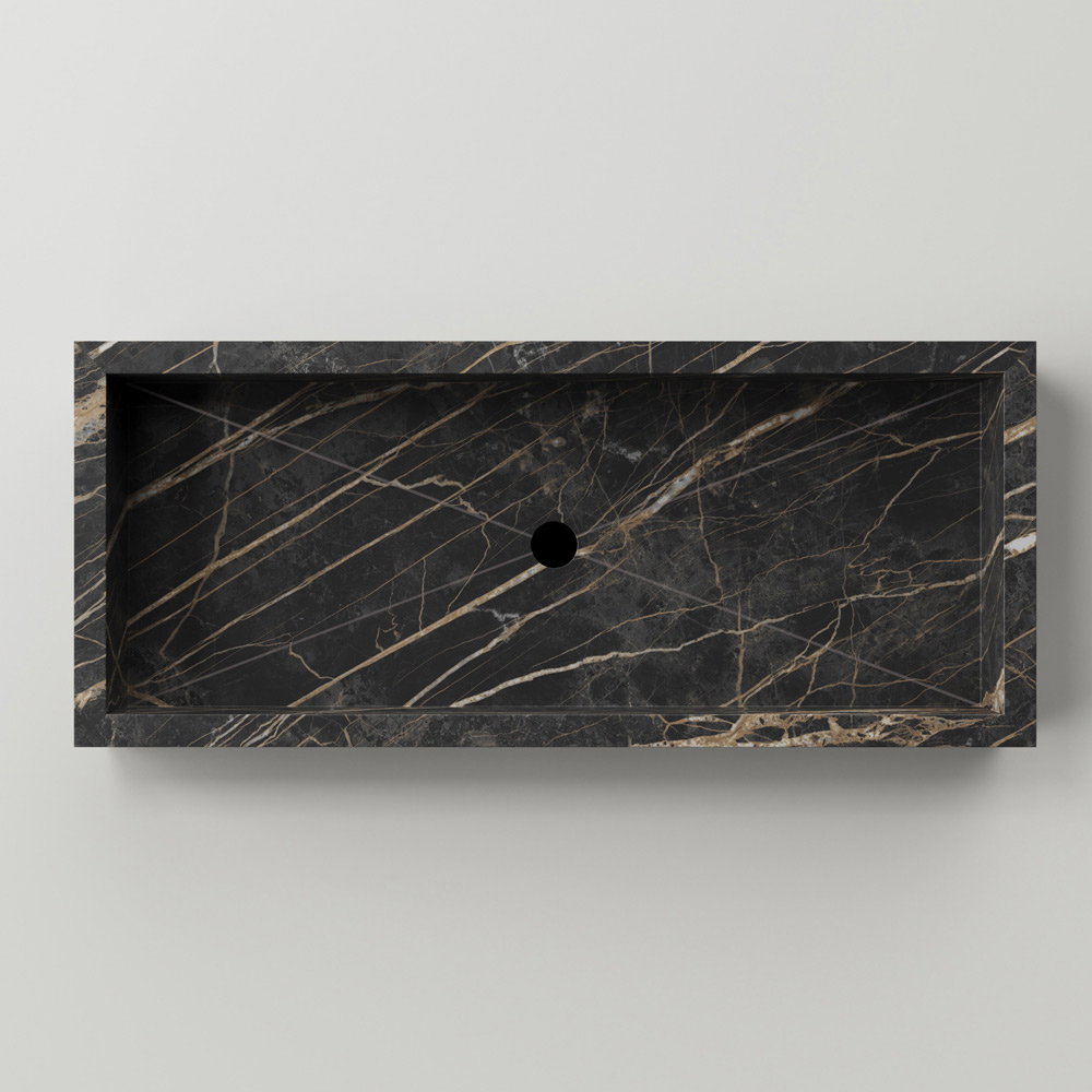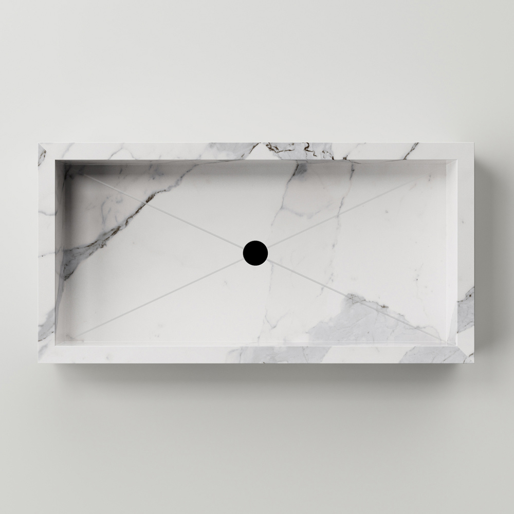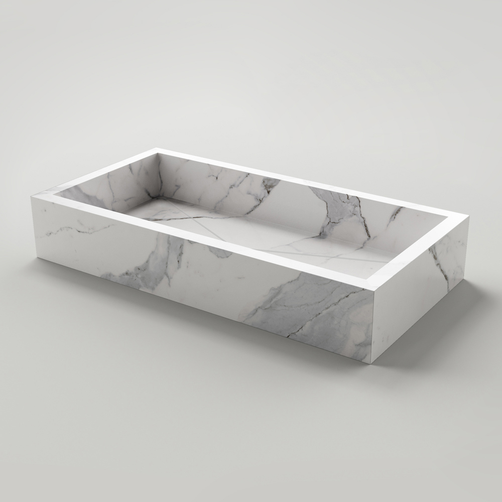 Prostokątna umywalka nablatowa z gresu porcelanowego Made in Italy.
