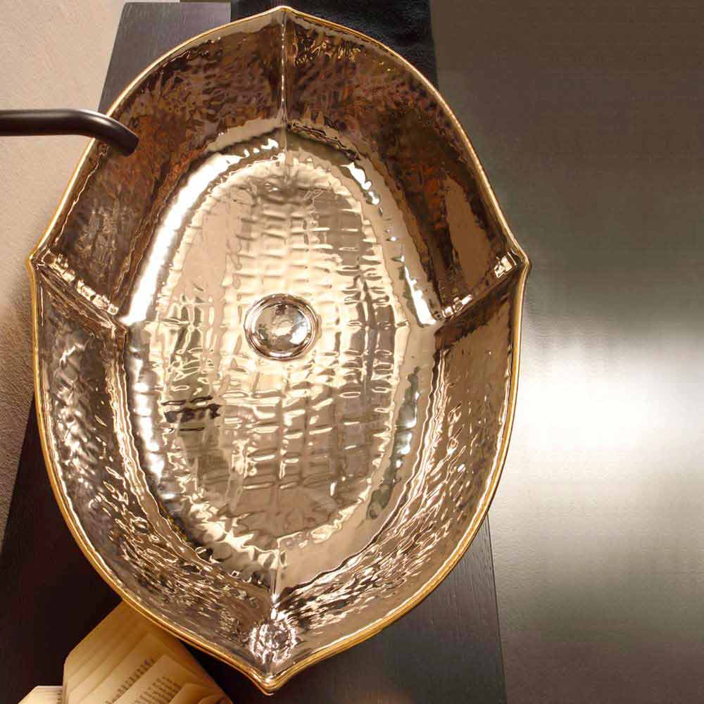 Umywalka nablatowa z ceramiki platynowo-złotej według projektu Oscar made Italy