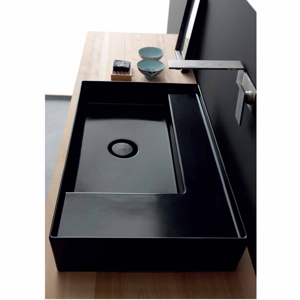 Nowoczesna umywalka nablatowa z czarnej ceramiki wyprodukowana we Włoszech Nowoczesna umywalka ceramiczna w kolorze czarnym matowym, dostępna bez otworu na baterię.