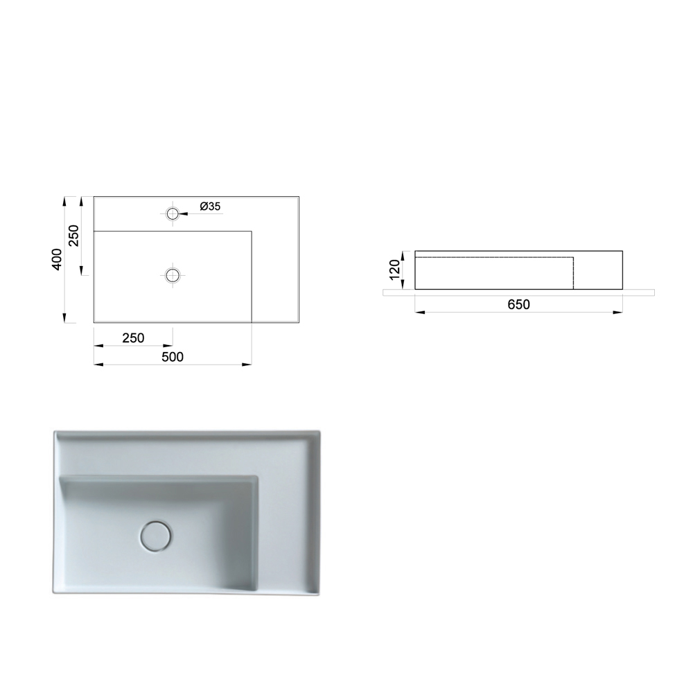 Cechy: - Umywalka nablatowa - W komplecie ceramiczny odpływ pasujący do umywalki -Bez otworu na baterię