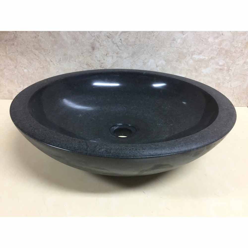 Ręcznie robiona umywalka nablatowa z kamienia naturalnego, nowoczesny design. Kolor: czarny