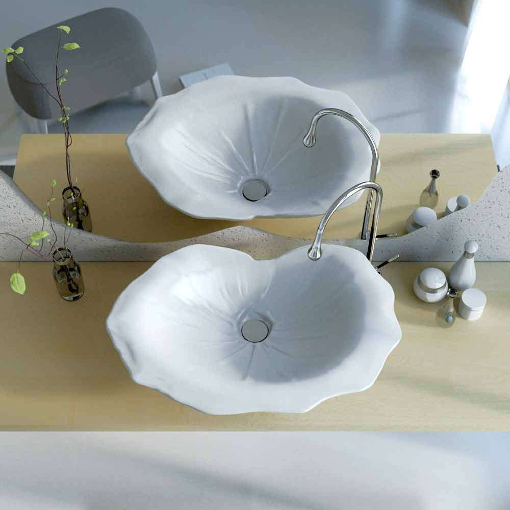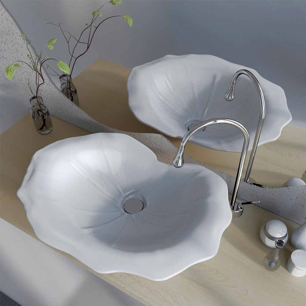 Nowoczesna umywalka nablatowa w kształcie liścia Faruglium