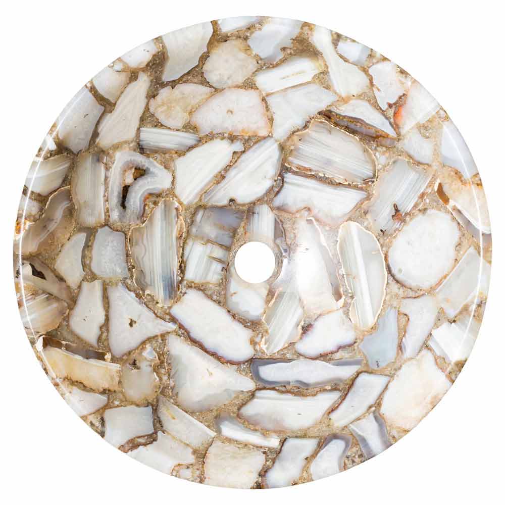 Okrągła umywalka nablatowa z kamienia agatowego Mila, unikalna