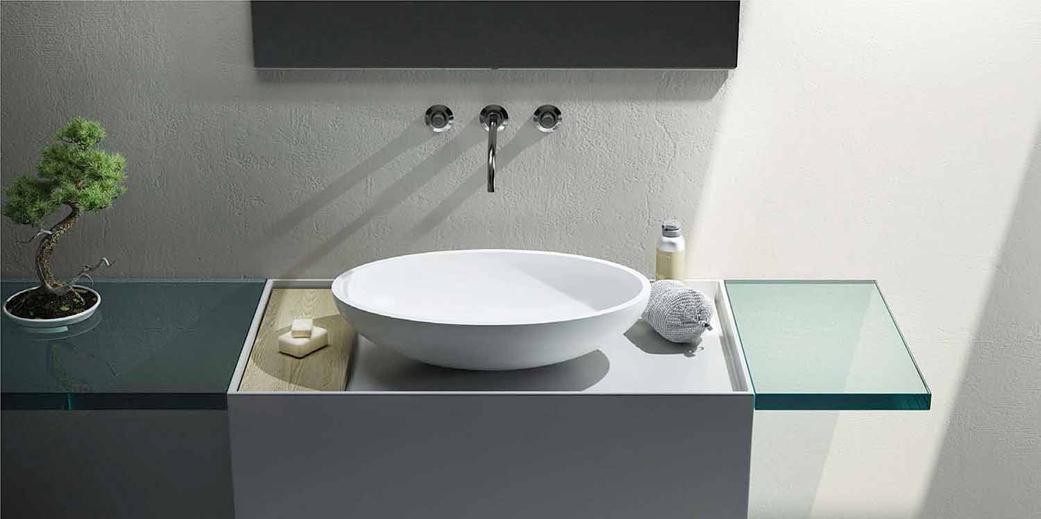 Owalna umywalka nablatowa w wersji Solid Surface, Frascati