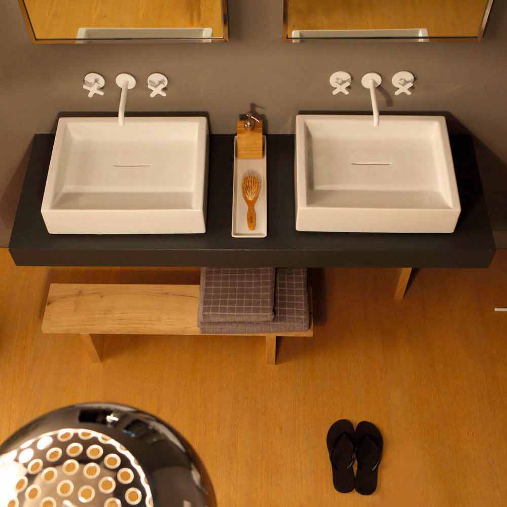 Designerska prostokątna ceramiczna umywalka nablatowa made in Italy Dalia