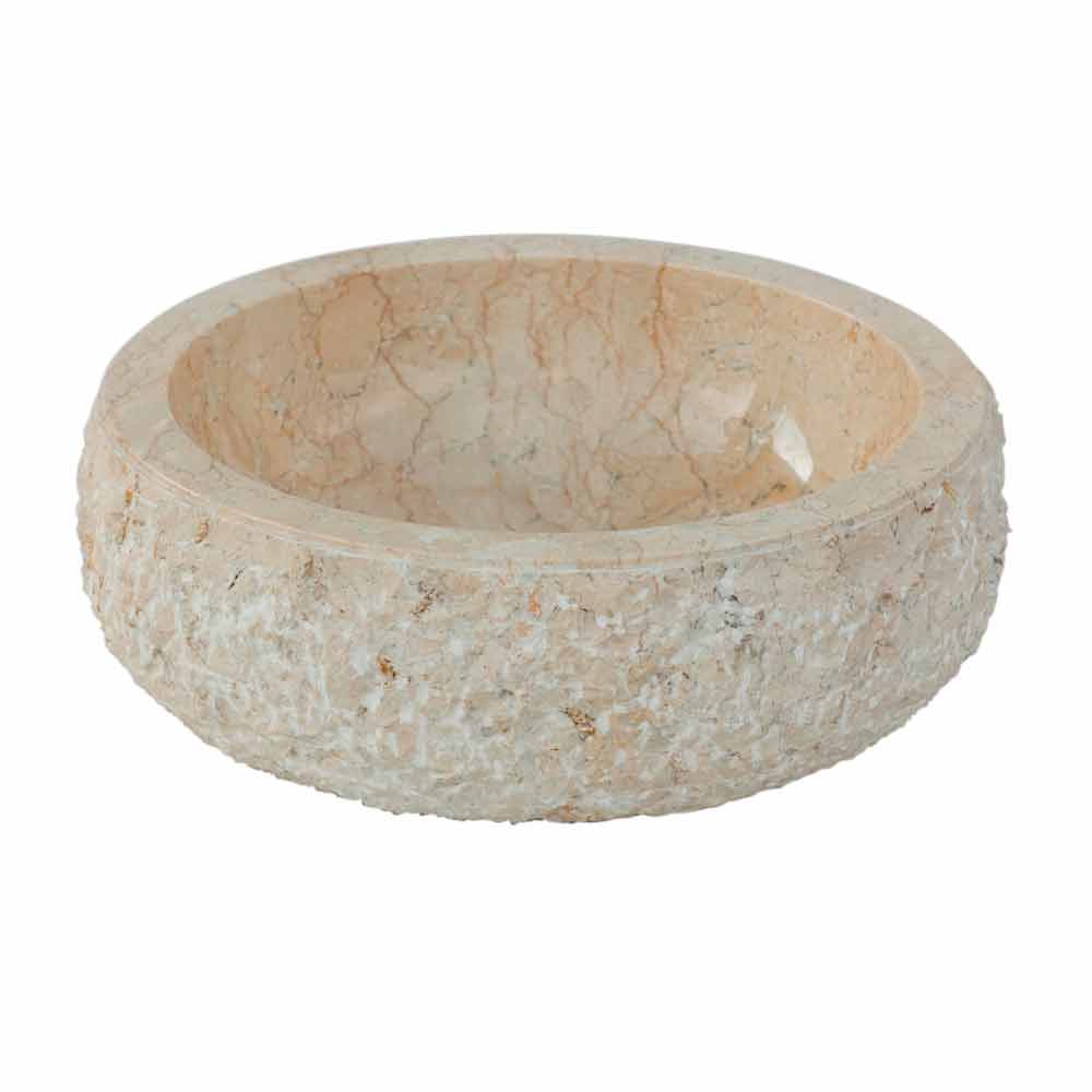 Ręcznie robiona umywalka nablatowa z kamienia naturalnego, nowoczesny design.