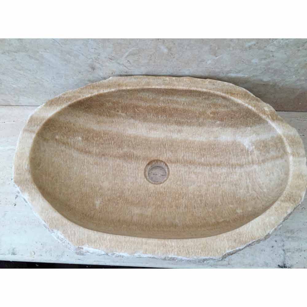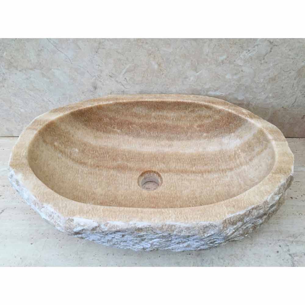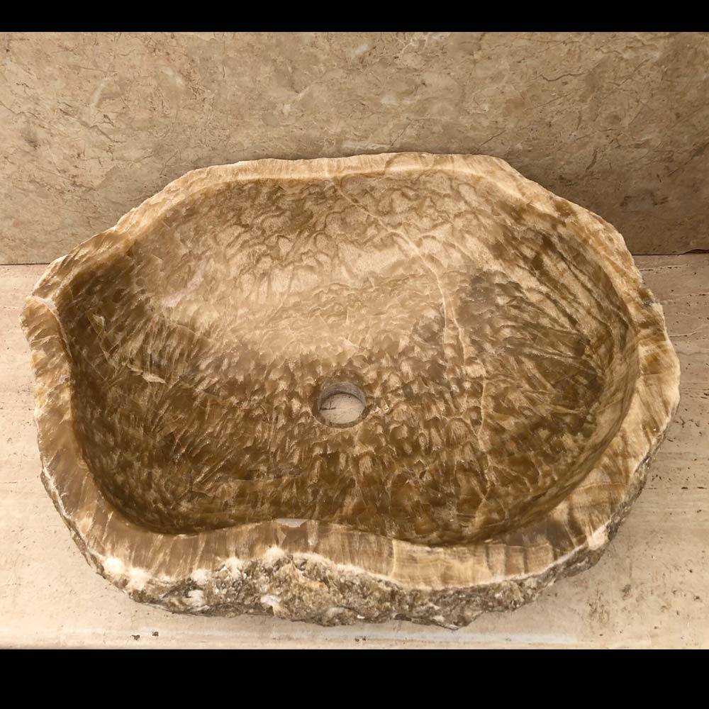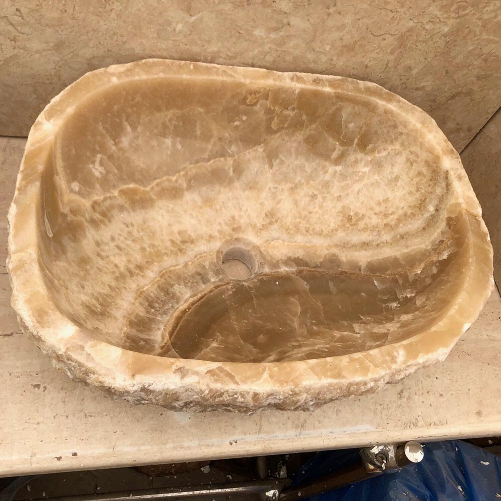 Umywalka nablatowa z kamienia naturalnego, wykonana ręcznie.