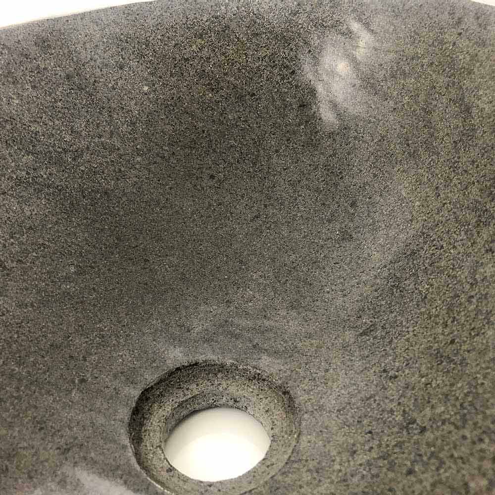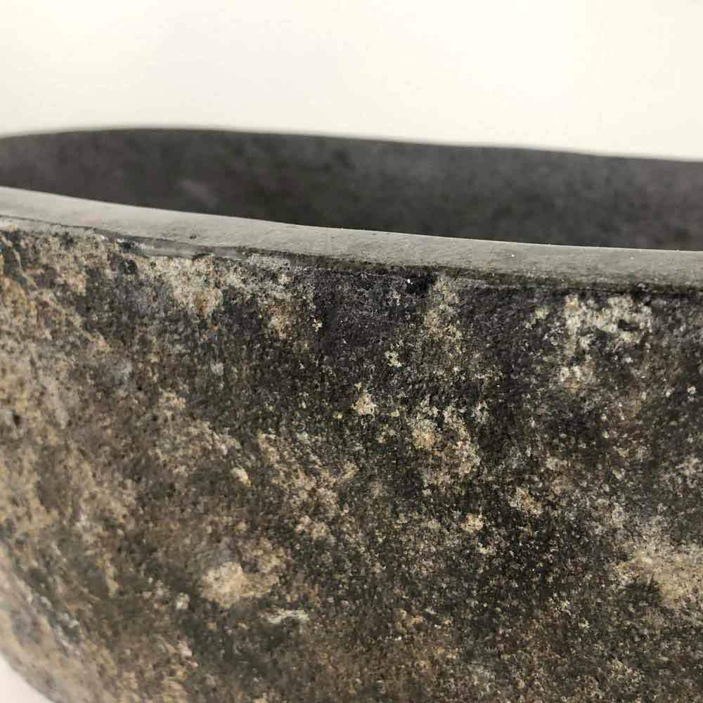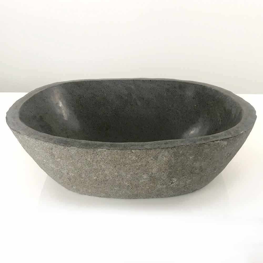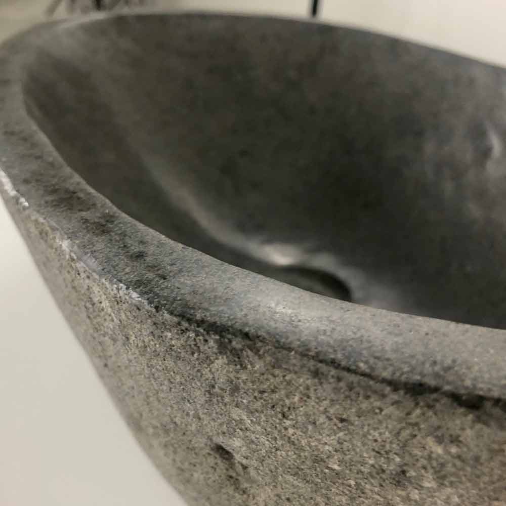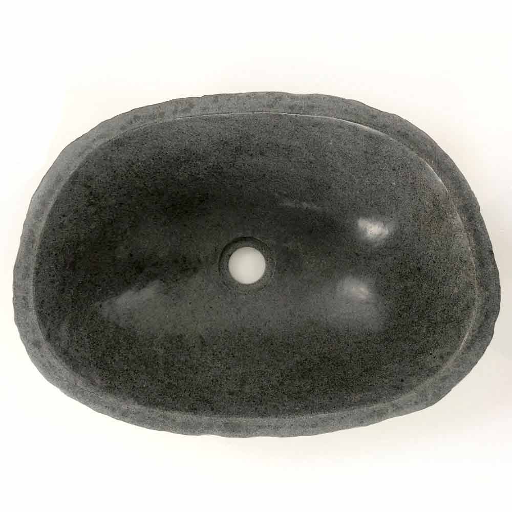 Umywalka nablatowa model Akta z naturalnego kamienia rzecznego, o owalnym kształcie.