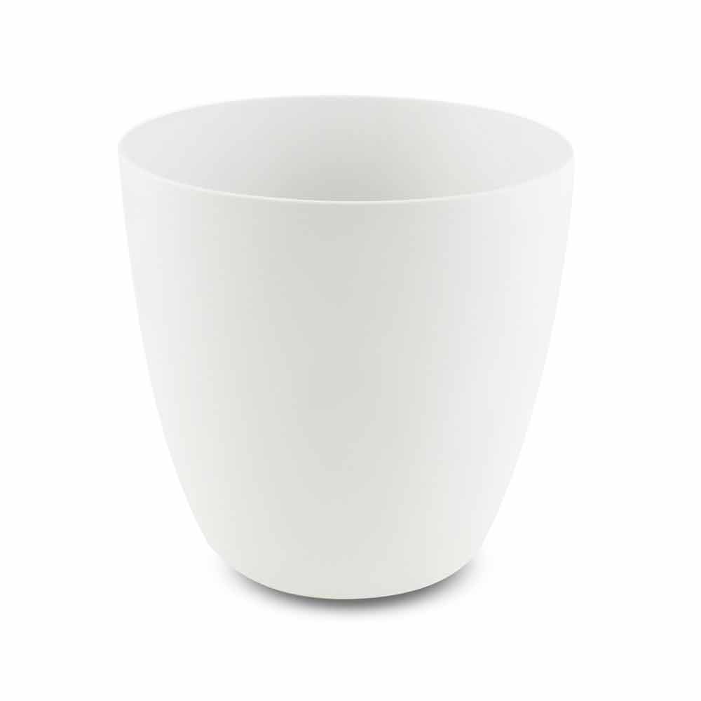 Zlew nablatowy w kształcie wiadra. Wykonany z żywicy i proszków mineralnych o małej gęstości w białym wykończeniu.