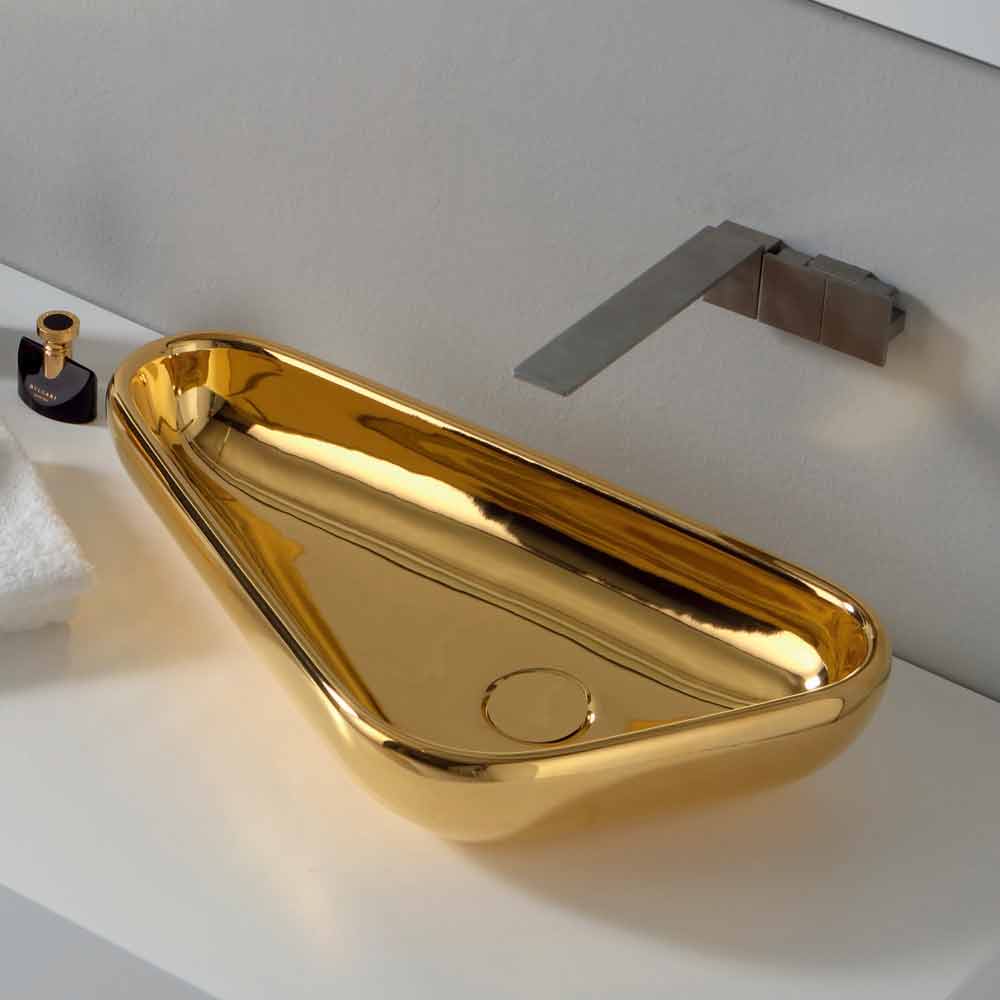 Nowoczesna złota umywalka nablatowa Sofia z ceramiki made in Italy