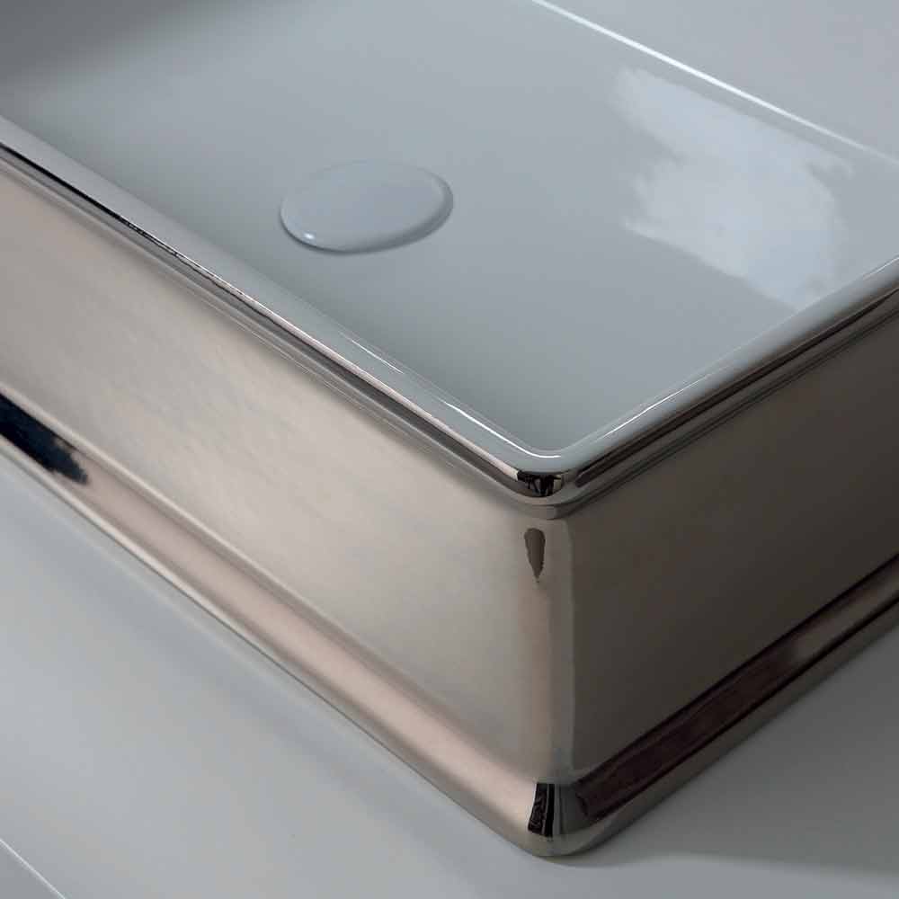 Debora to umywalka nablatowa produkowana z ceramiki w kolorze białym i platynowym, która ucieleśnia wyrafinowanie i elegancję, nie zaniedbując jednocześnie funkcjonalności.