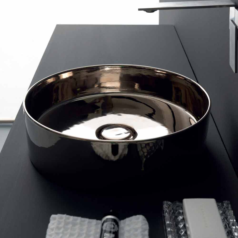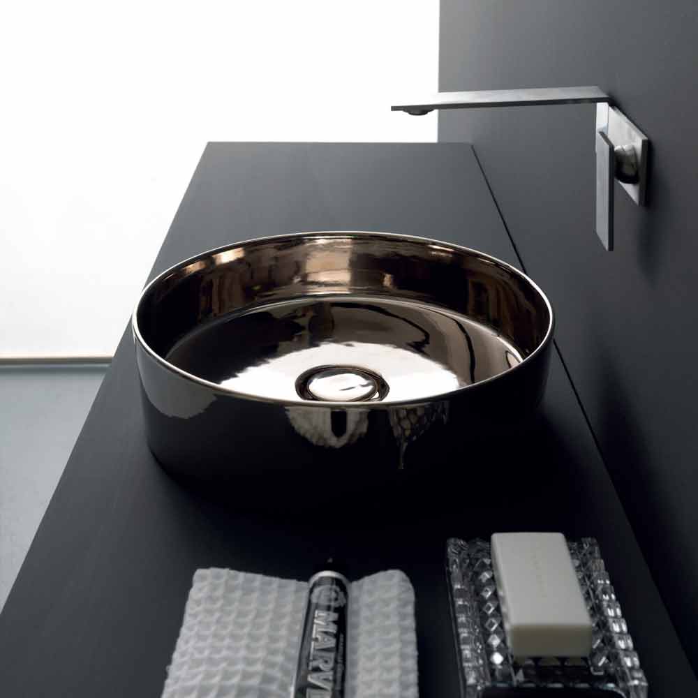 Okrągła umywalka nablatowa z kolorowej ceramiki wyprodukowana we Włoszech