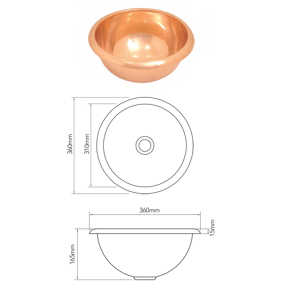 Umywalka nablatowa okrągła z miedzi, wykonana ręcznie, Alba