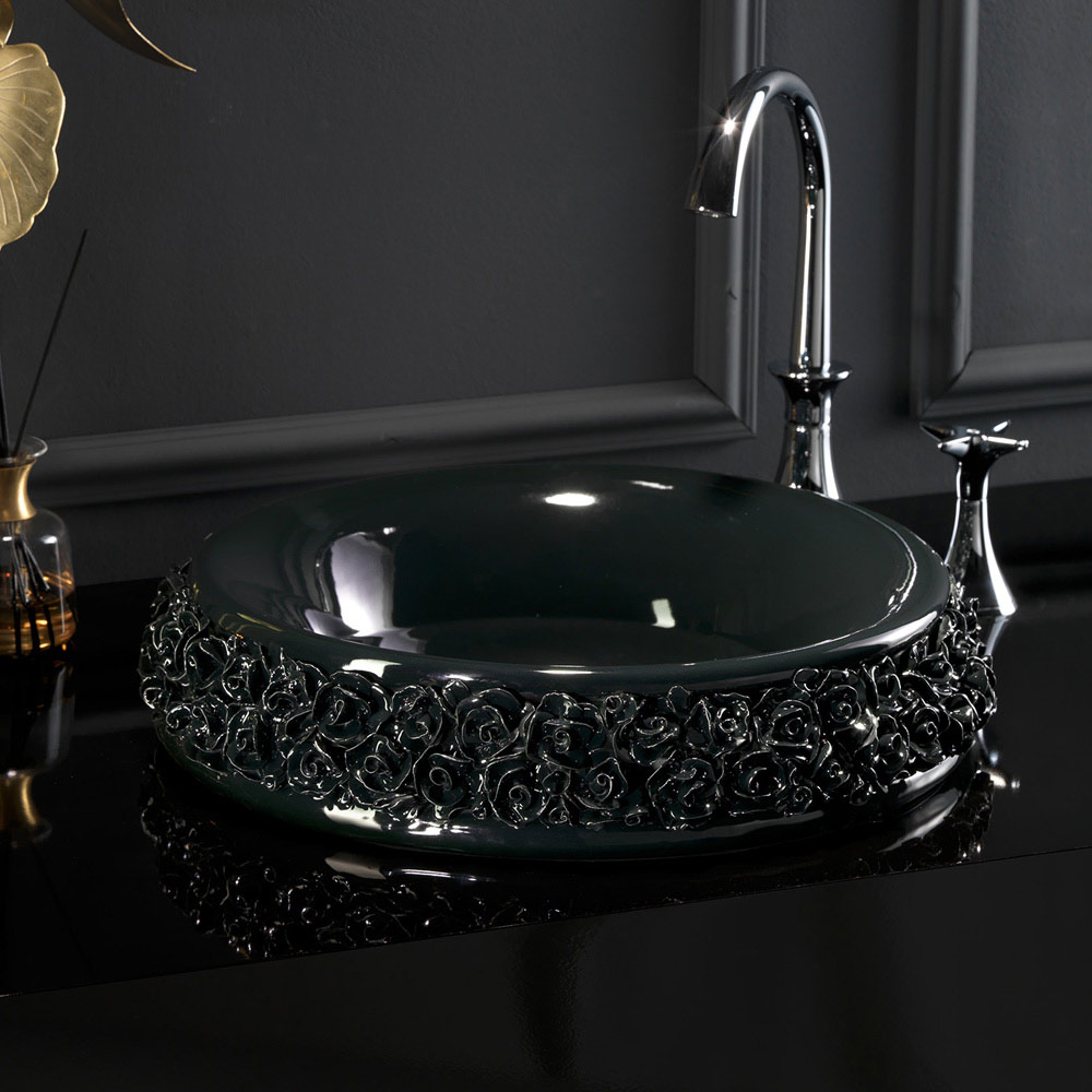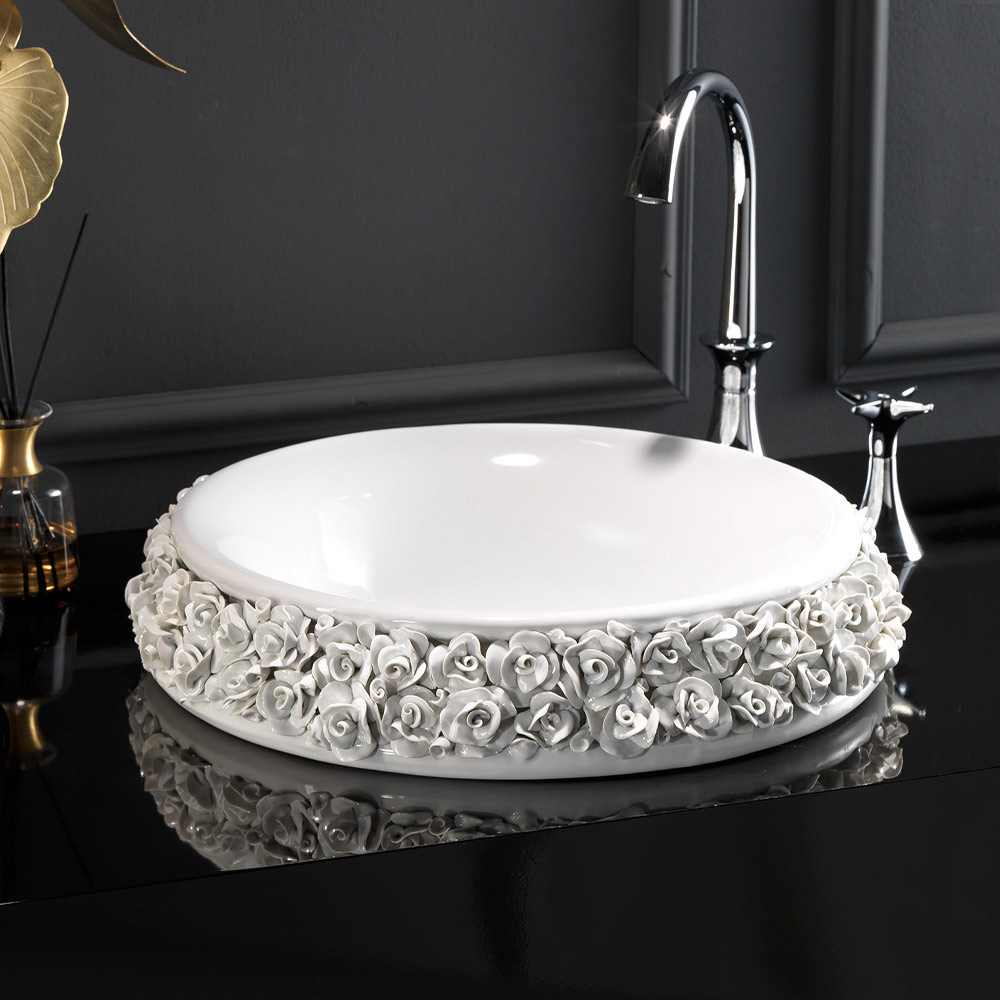 Umywalka z ręcznie odlewanej porcelany z płatkami Made in Italy