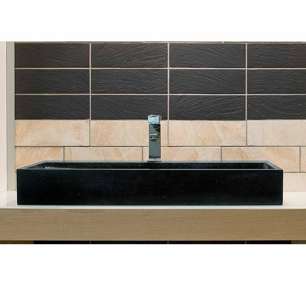 Prostokątna umywalka górna wykonana z czarnego bazaltu Chao.
