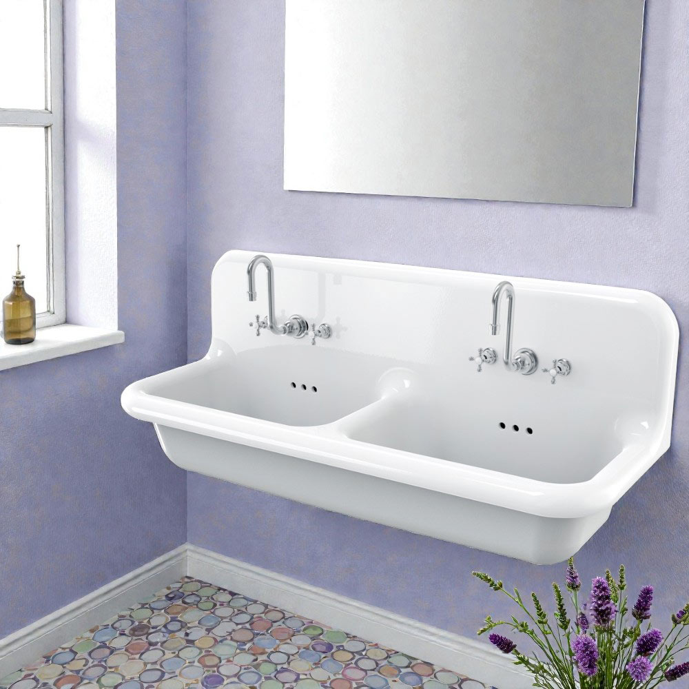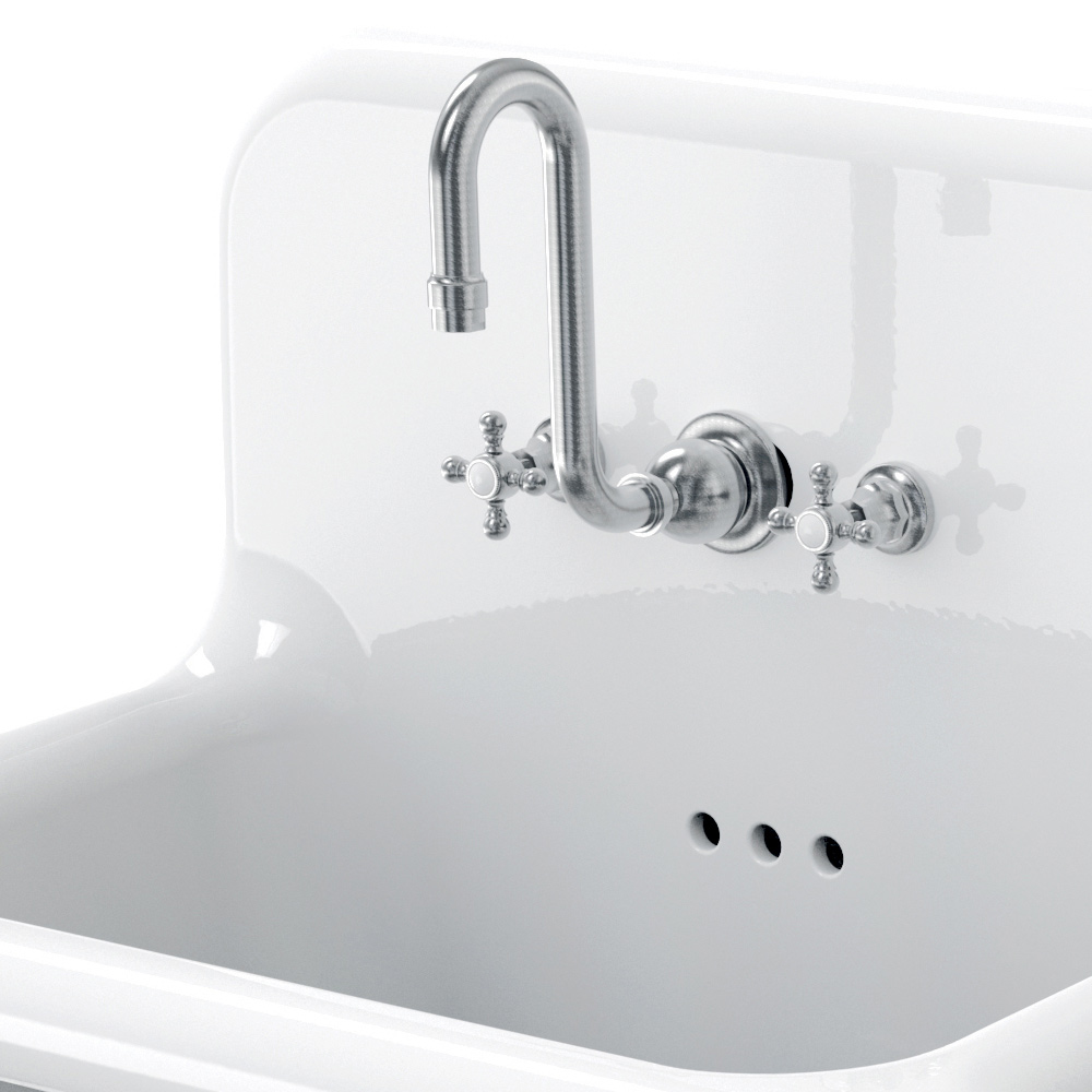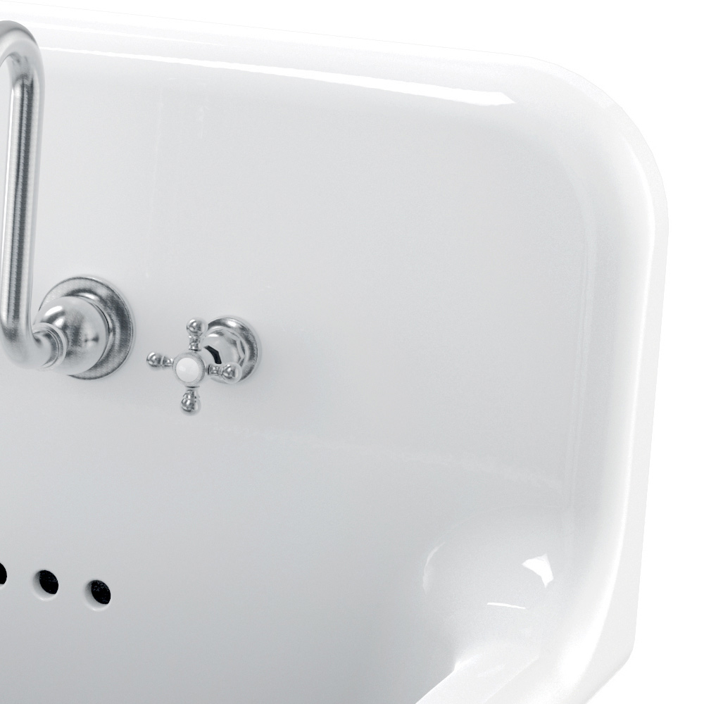 Jack to piękna umywalka ścienna o prostokątnym kształcie, dużych wymiarach i oryginalnym, zabytkowym designie.